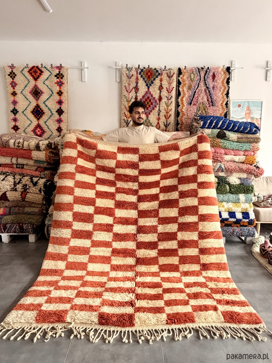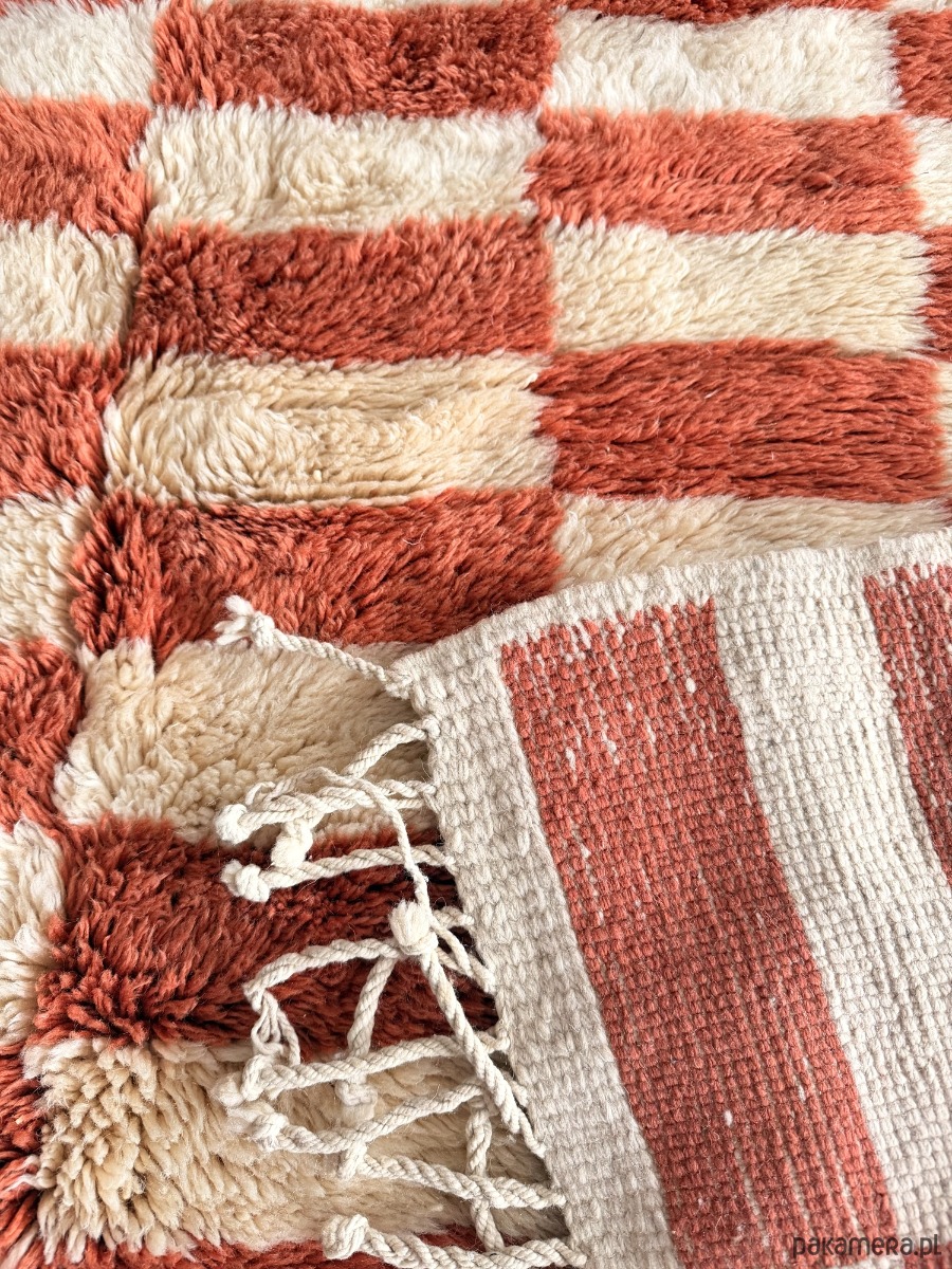 Klasyczny wzór szachownicy w ciepłych odcieniach terakoty i jasnej naturalnej wełny tworzy ponadczasowy dywan w kratę, który doskonale odnajdzie się zarówno w nowoczesnych, jak i bardziej tradycyjnych wnętrzach. Ten dywan premium wnosi do przestrzeni elegancję, ciepło i wyjątkowy charakter.