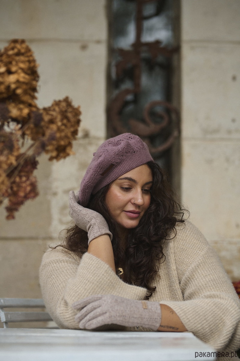 Beret W-1 Skład80% poliester, 20% angora- beret produkcji włoskiej - beret z przyjemnego miękkiego materiału - piękny wytłaczany wzór- dostępny w kilku wariantach kolorystycznych