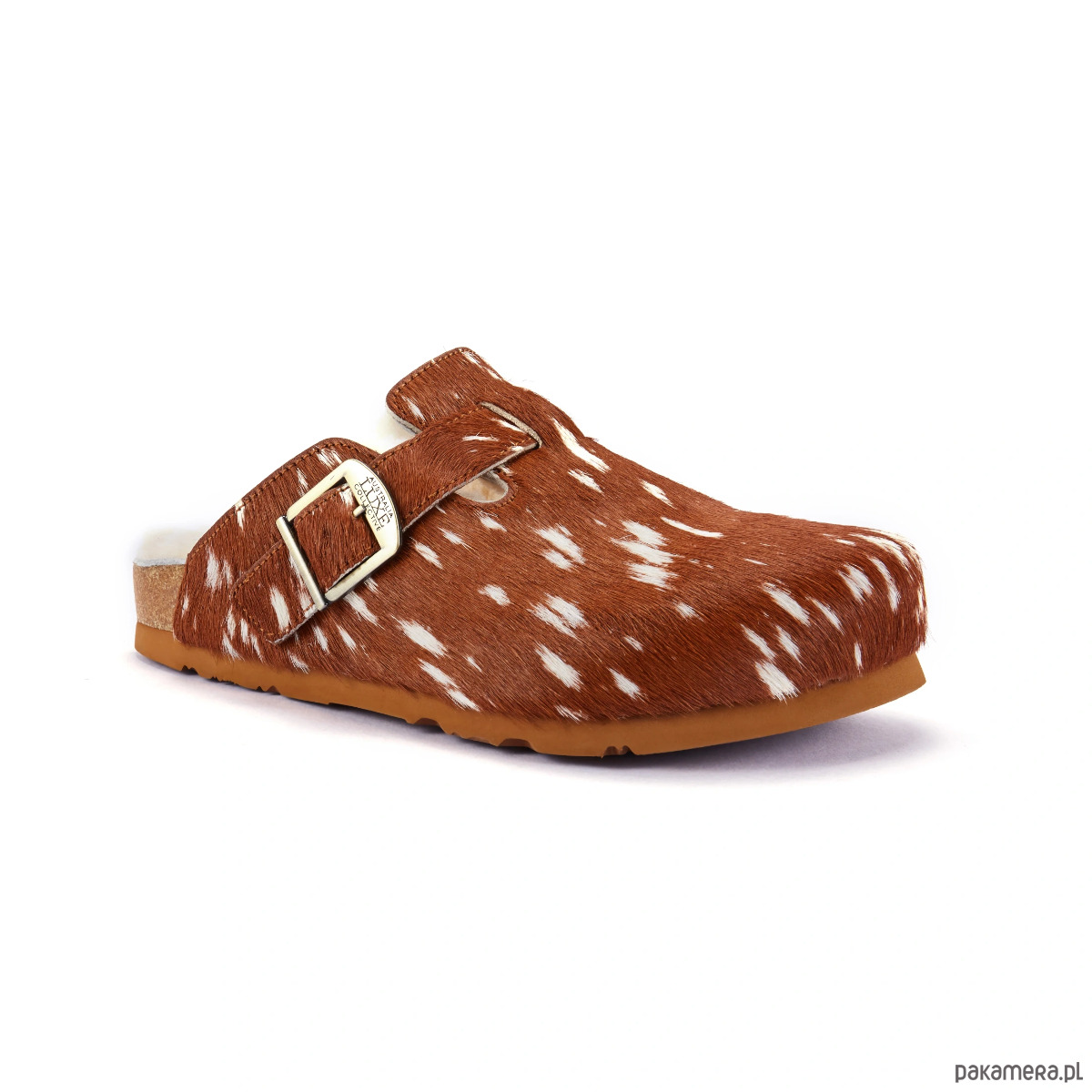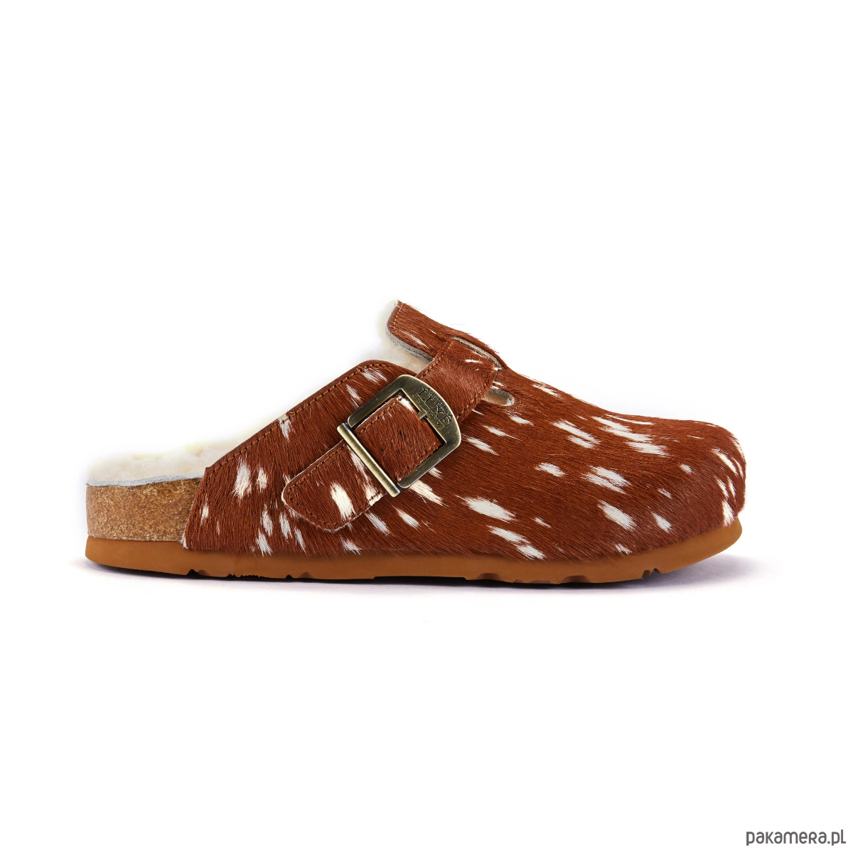 Buty typu clog wsuwane z miękkiego zamszu z boczną sprzączką