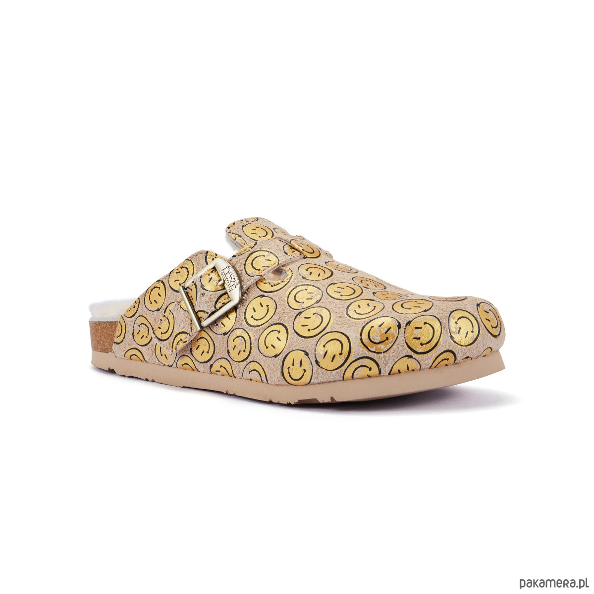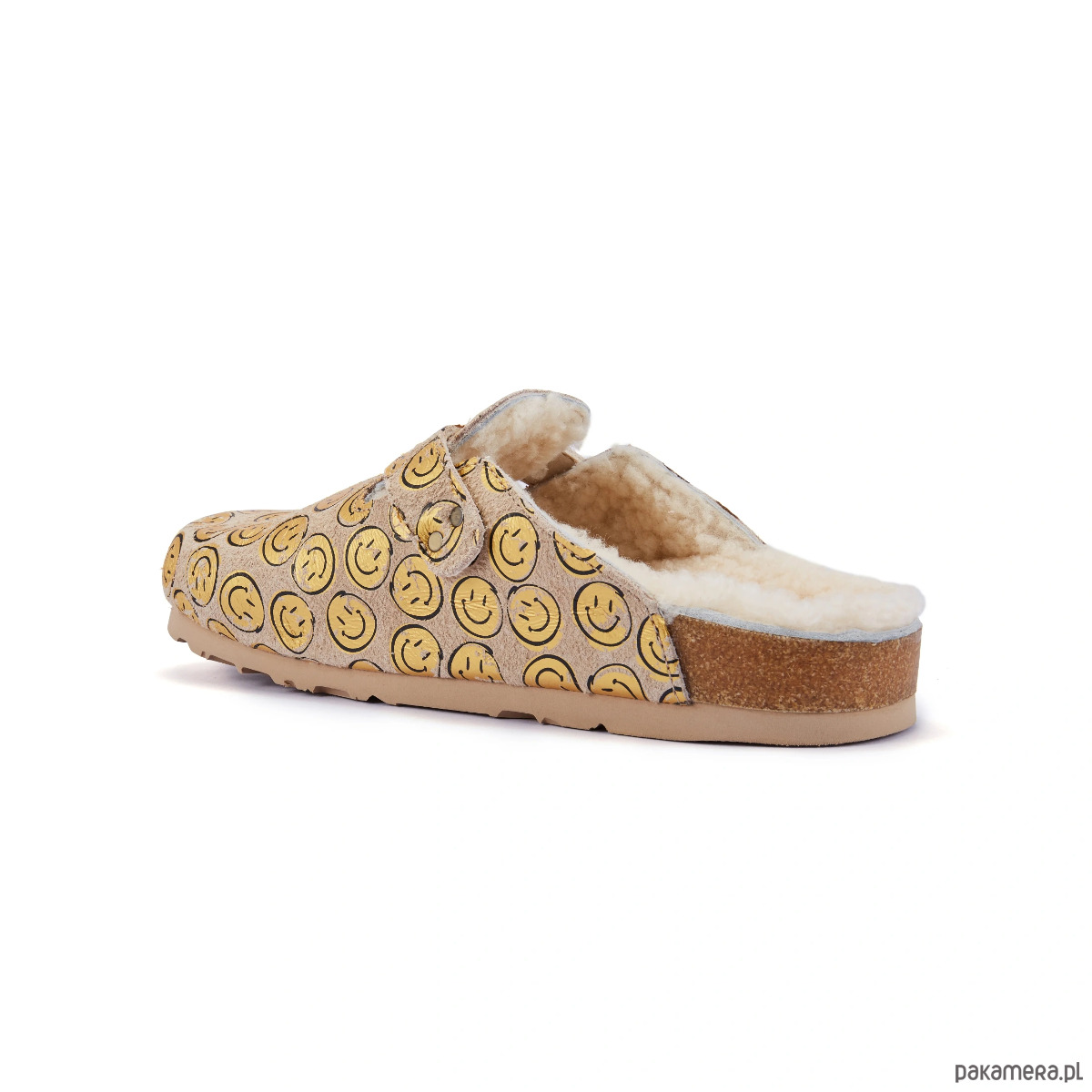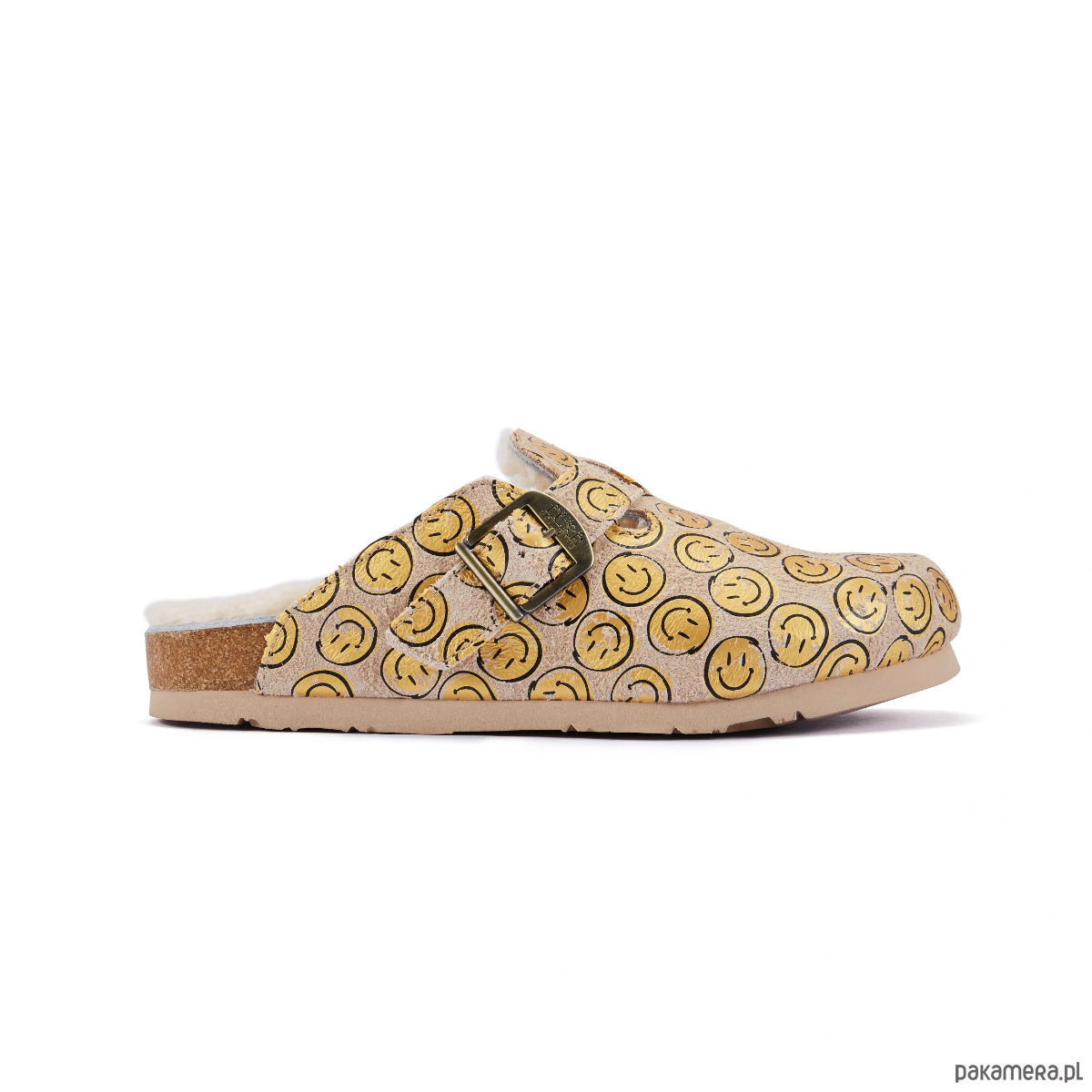 Buty typu clog wsuwane z miękkiego zamszu z boczną sprzączką