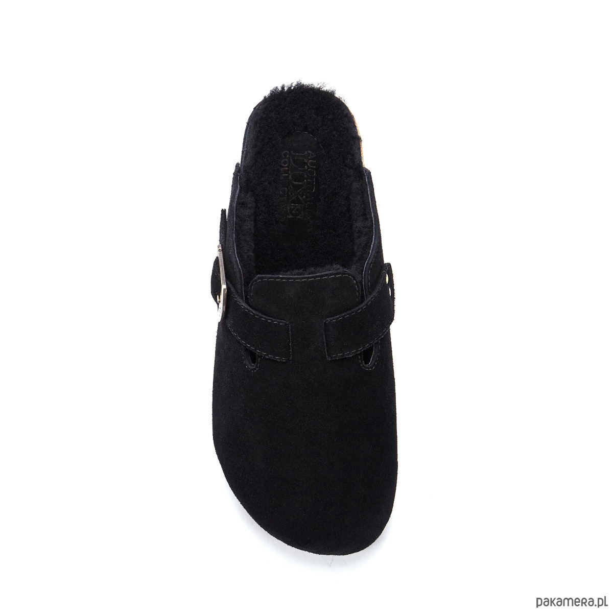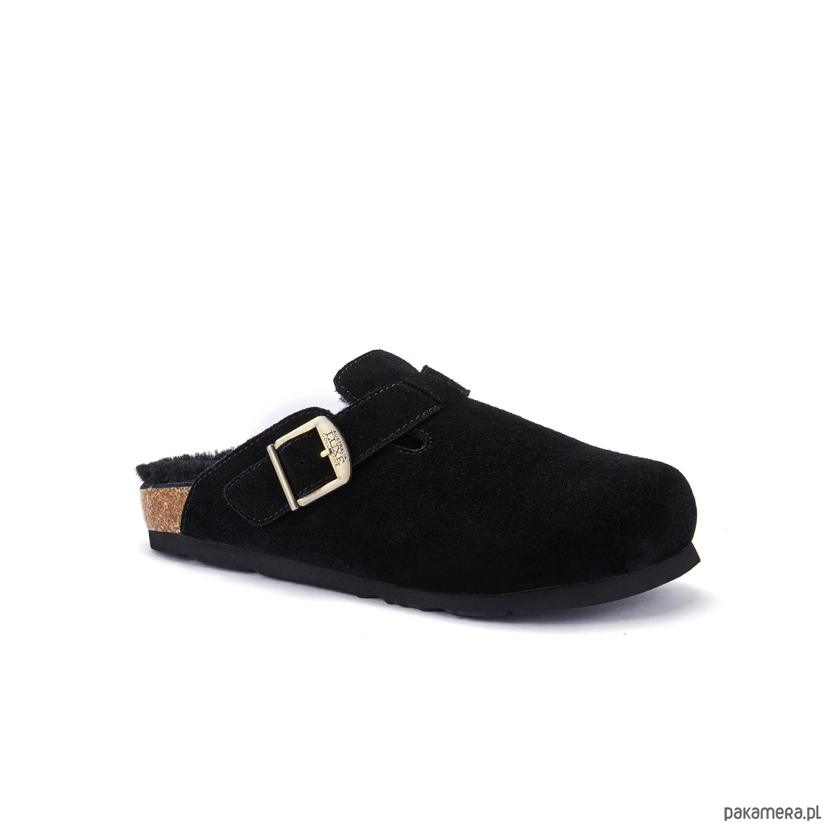 Buty typu clog wsuwane z miękkiego zamszu z boczną sprzączką