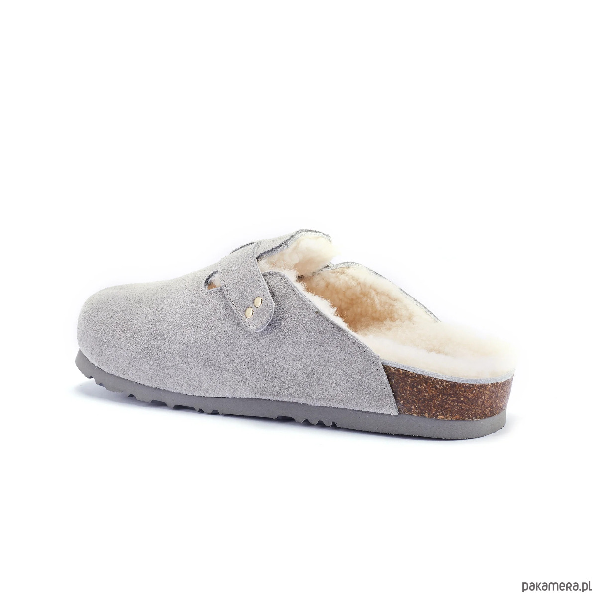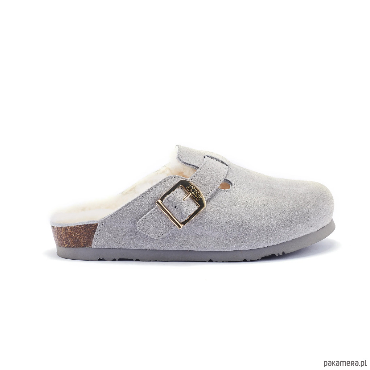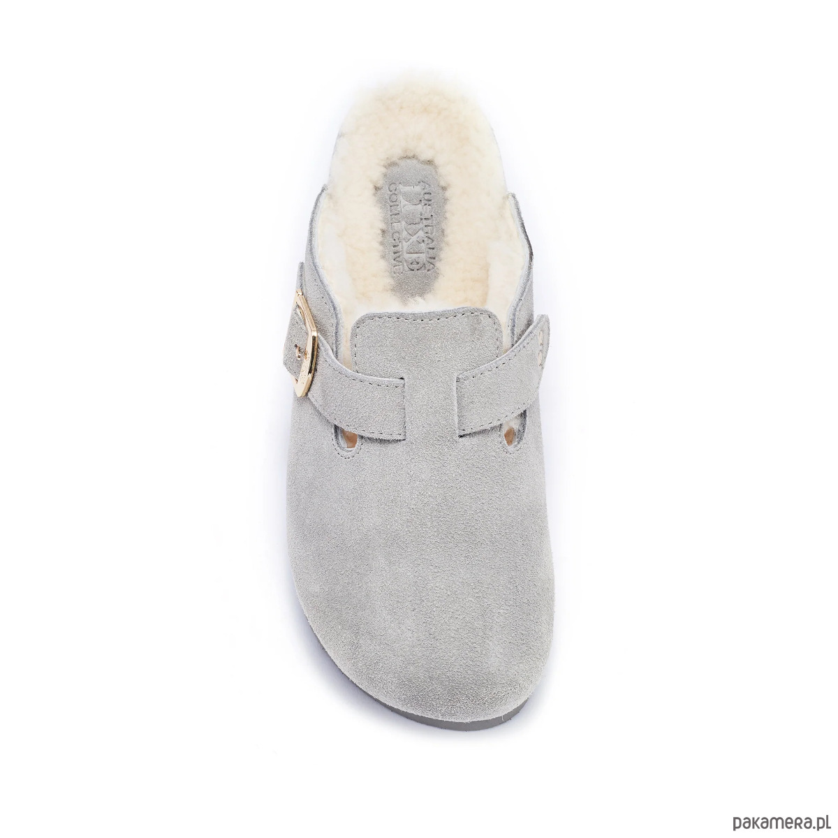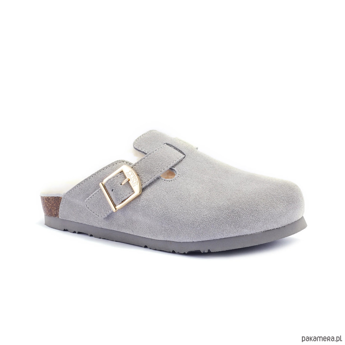 Buty typu clog wsuwane z miękkiego zamszu z boczną sprzączką