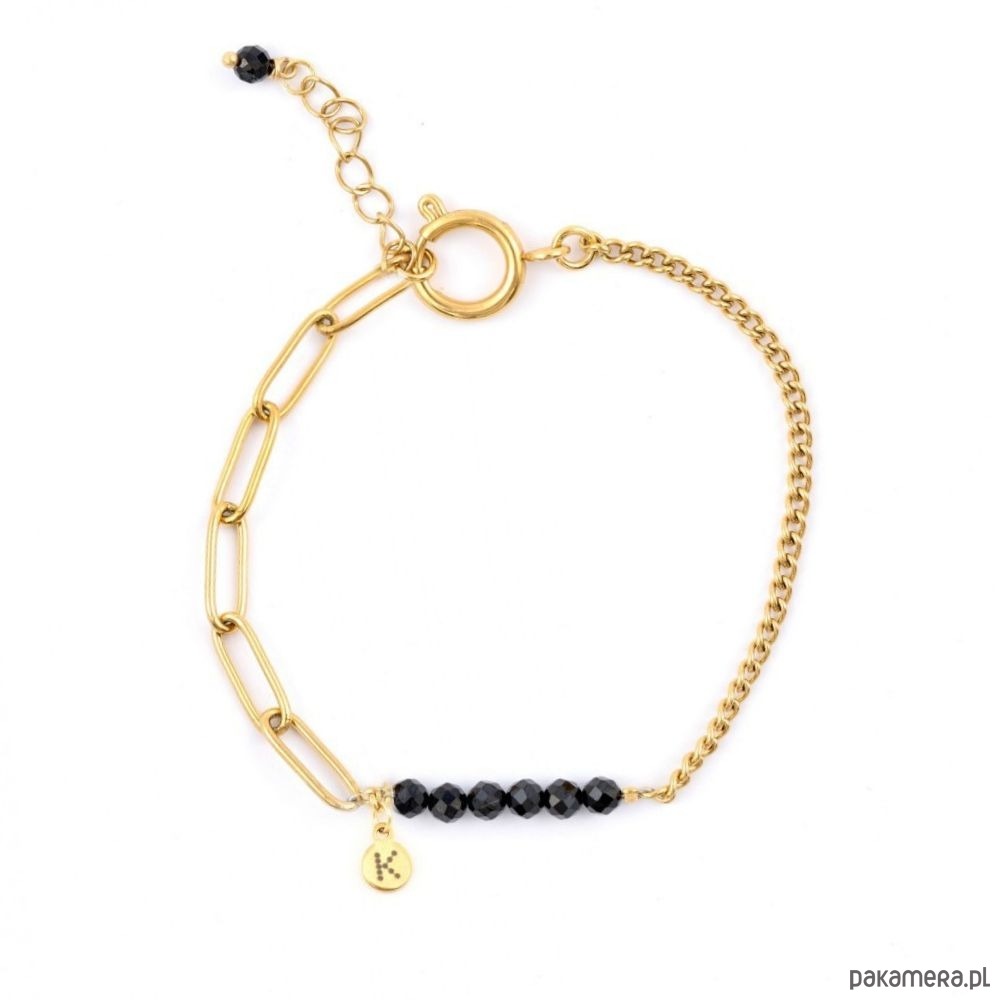 Pozłacaną bransoletkę wykonałyśmy z dwóch łańcuchów o różnych splotach i czarnego Turmalinu.