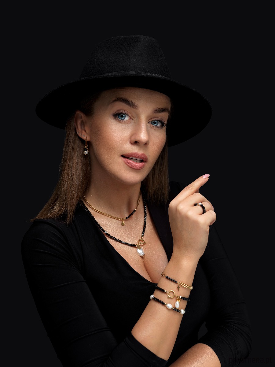 Bestseller! Bransoletka z czarnym Turmalinem Pozłacana stal szlachetna