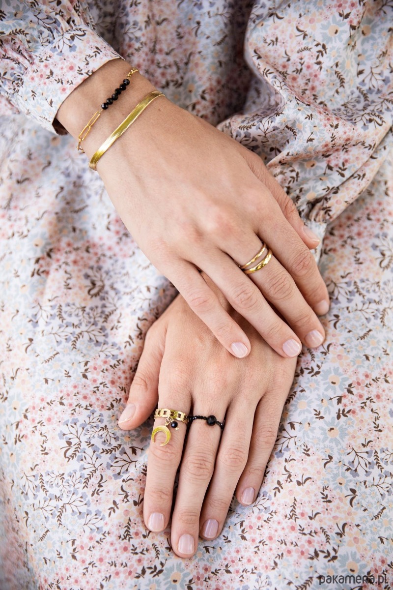 Bransoletka wykonana jest z antyalergicznej stali szlachetnej pozłacanej, która nie uczula. Bez obaw, pozłocenie pięknie się utrzymuje, nie ciemnieje i nie wyciera.