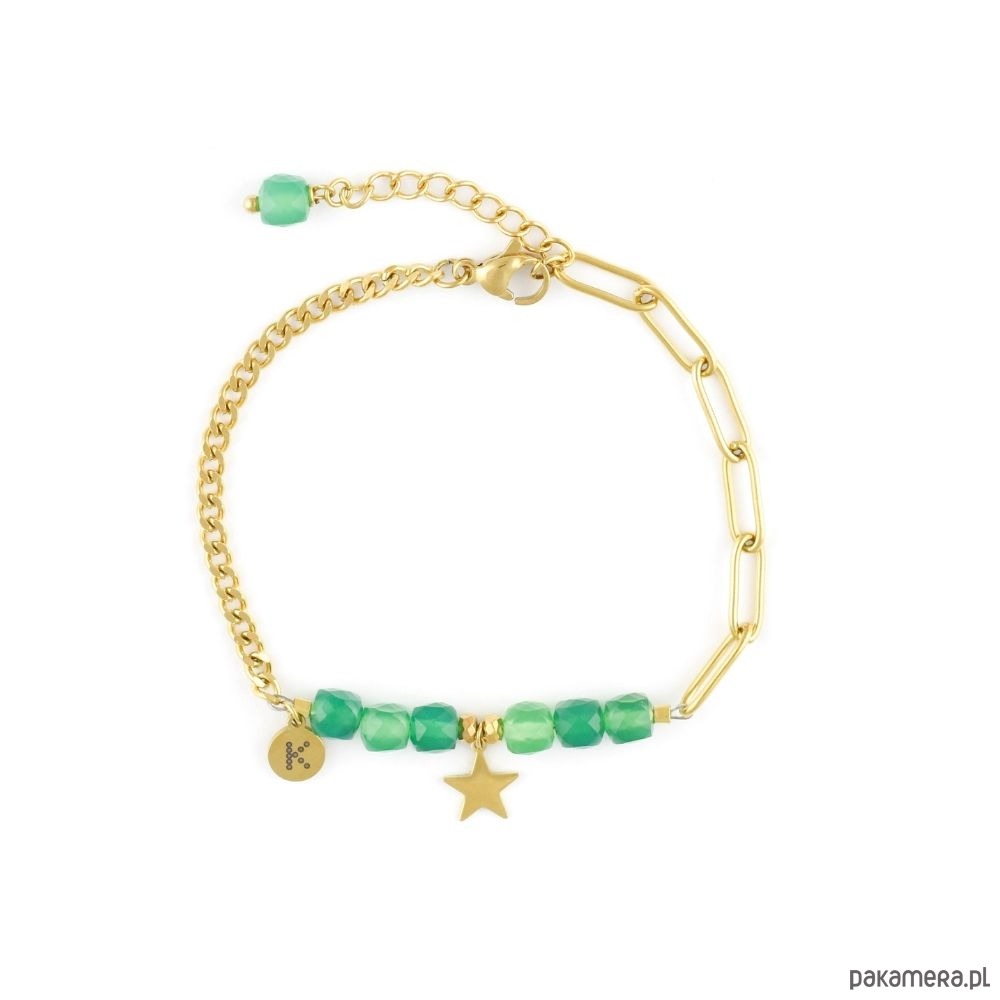 Bestseller! Bransoletka zielony Onyks z gwiazdką Pozłacana stal szlachetna