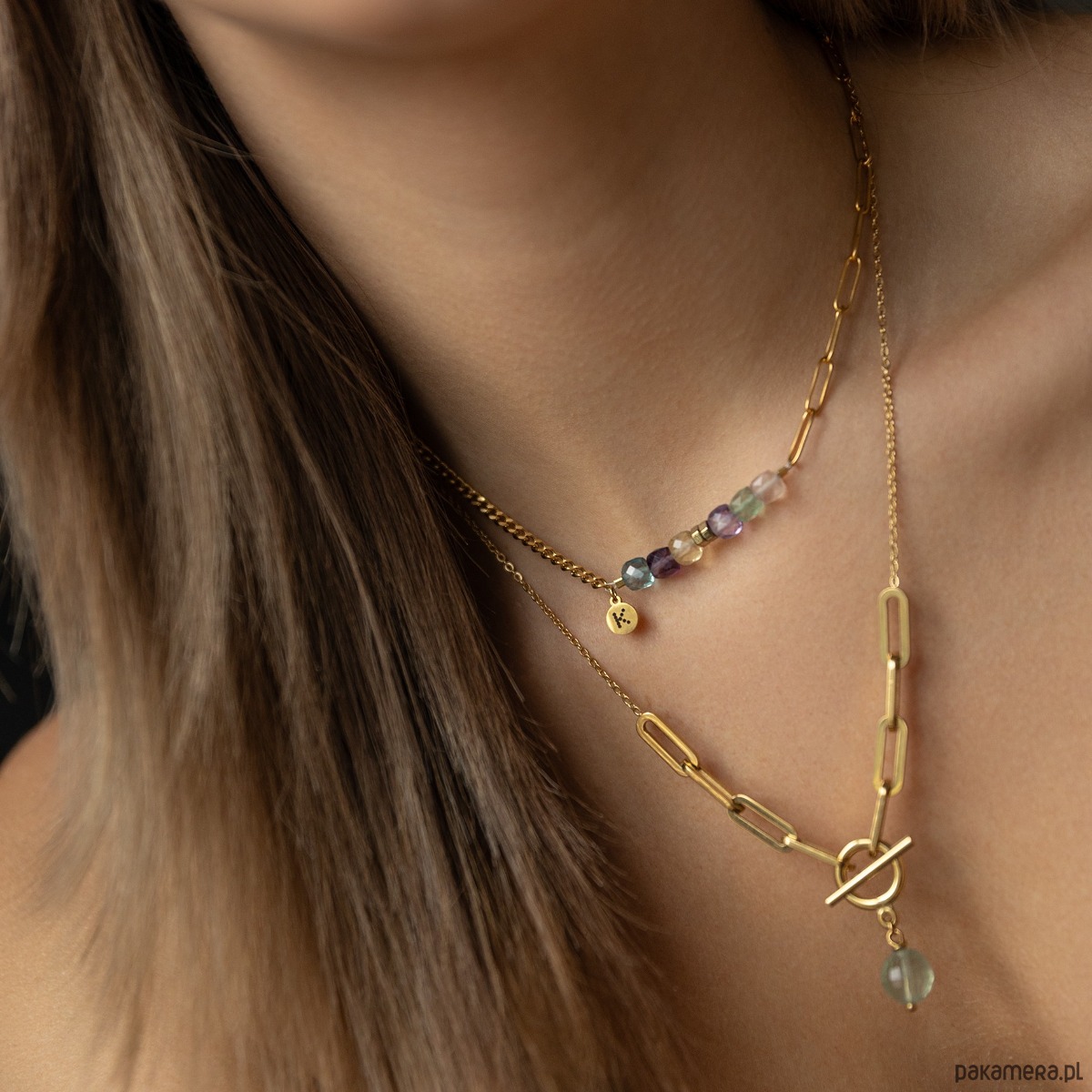 Poznaj naszą nowość! Nasz ponadczasowy naszyjnik Bestseller w nowej formie. Tym razem z przepięknego, magicznego Fluorytu w półprzeźroczystej pastelowej formie oraz Hematytu metalizowanego na złoto.