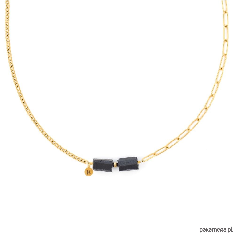 Bestseller! Naszyjnik z surową bryłą czarnego Turmalinu Pozłacana stal