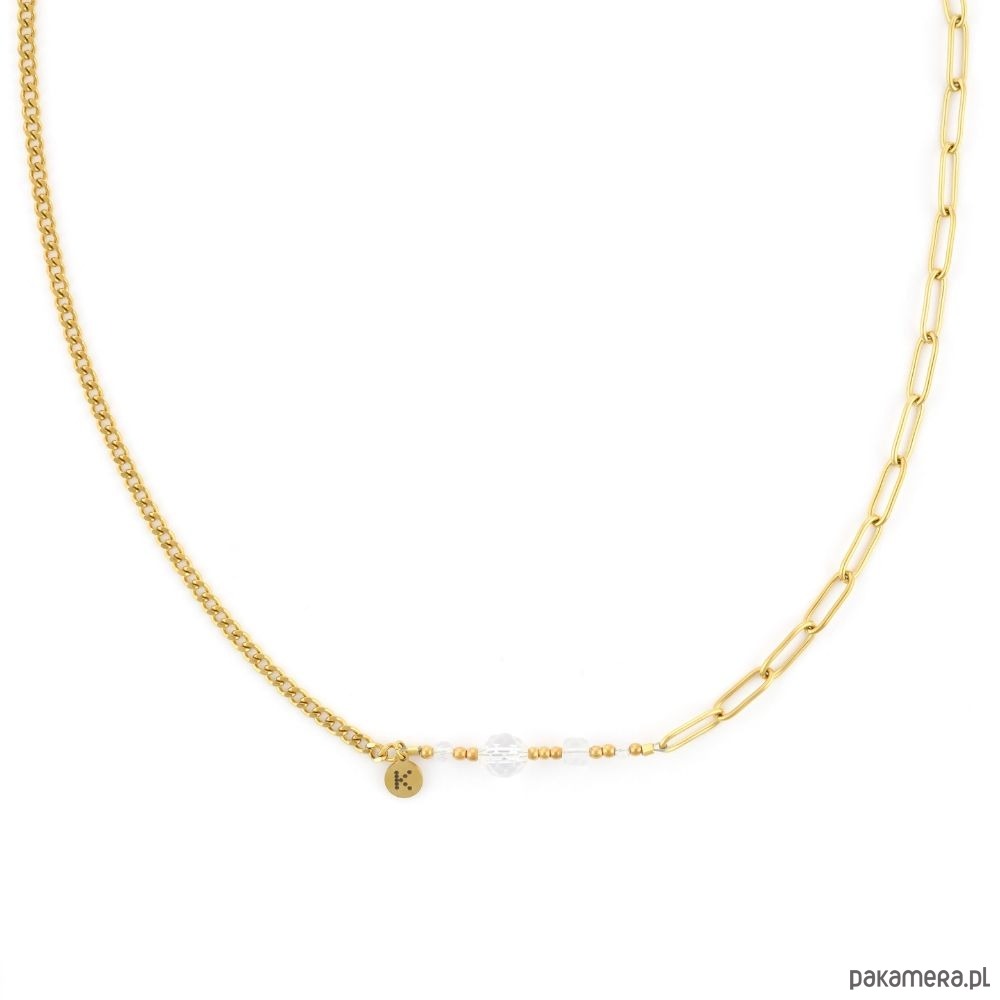 Kryształ górski to kamień energii. Dzięki oczyszczającej energii kryształu górskiego możemy żyć w zgodzie ze sobą, innymi ludźmi i naturą. Hematyt to kamień wojowników. Silnie oczyszcza krew. Budzi radość do życia, dodaje odwagi i wiary we własne umiejętności. Naszyjnik wykonany jest z antyalergicznej stali szlachetnej pozłacanej, która nie uczula. Bez obaw, pozłocenie pięknie się utrzymuje, nie ciemnieje i nie wyciera. Wybierz długość naszyjnika w konfiguratorze. Polecamy długość 38 cm + 5 cm regulacji jest to standardowa długość idealnie układająca się na większości dekoltów. Naszyjnik bestseller nie może być za długi, najlepiej wygląda zapięty bliżej szyi. Wymiary: Kamienie: Hematyt/Kryształ Górski Wielkość kamieni: 2mm/2mm,8mm,6x8mm Grubość splotu pancerki: ok. 2mm x 1mm Grubość łańcucha: 3mm x 6,5 mm x 0,5mm Blaszka z logo: ok. 6mm Materiał: antyalergiczna stal chirurgiczna