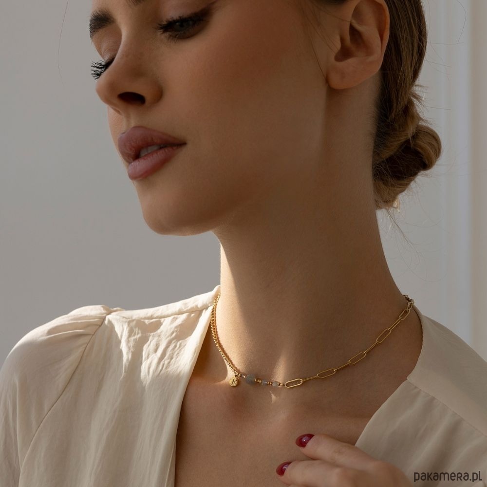 Naszyjnik wykonany jest z antyalergicznej stali szlachetnej pozłacanej, która nie uczula. Bez obaw, pozłocenie pięknie się utrzymuje, nie ciemnieje i nie wyciera.