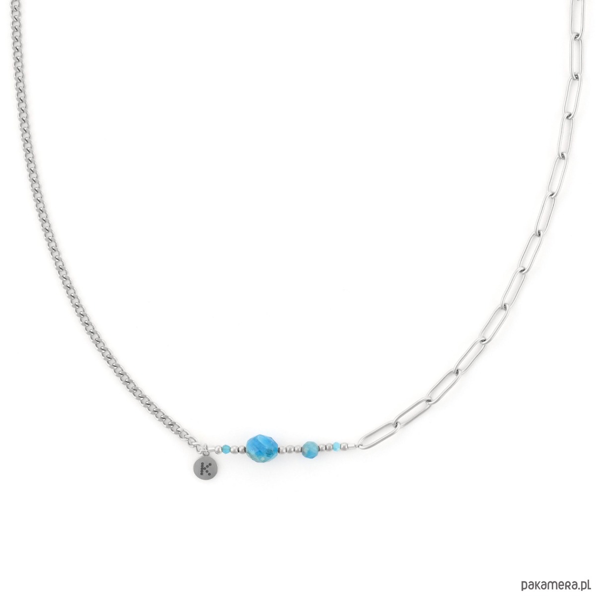 Wybierz długość naszyjnika w konfiguratorze. Polecamy długość 38 cm + 5 cm regulacji jest to standardowa długość idealnie układająca się na większości dekoltów. Naszyjnik bestseller nie może być za długi, najlepiej wygląda zapięty bliżej szyi. Wymiary: Kamienie: Hematyt/ApatytWielkość kamieni: 2mm/3mm,4mm,6mm,6x8mmGrubość splotu pancerki: ok. 2mm x 1mm Grubość łańcucha: 3mm x 6,5 mm x 0,5mm Blaszka z logo: ok. 6mmMateriał: antyalergiczna stal chirurgiczna