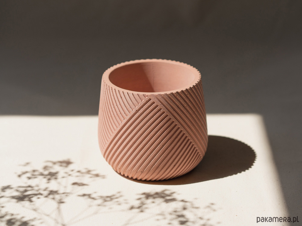 - ręcznie wykonana, ze względu na wykorzystany materiał oraz fakt, że jest to ręcznie robiony produkt, donice różnią się od siebie, mogą mieć delikatne, naturalne przebarwienia i dziurki po pęcherzykach powietrza