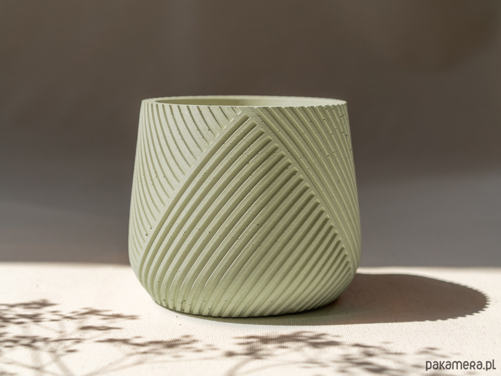 - ręcznie wykonana, ze względu na wykorzystany materiał oraz fakt, że jest to ręcznie robiony produkt, donice różnią się od siebie, mogą mieć delikatne, naturalne przebarwienia i dziurki po pęcherzykach powietrza