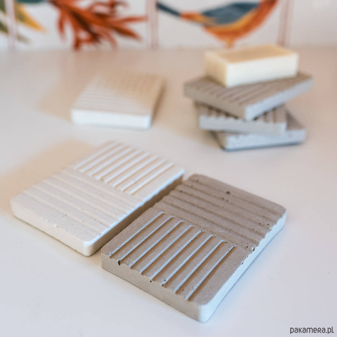Szara, betonowa mydelniczka o minimalistycznym designie wykonana ręcznie. Każda mydelniczka została pokryta ochronną warstwą wodoodpornego impregnatu , a na jej spodzie umieściliśmy silikonowe podkładki, aby nie rysowała powierzchni.