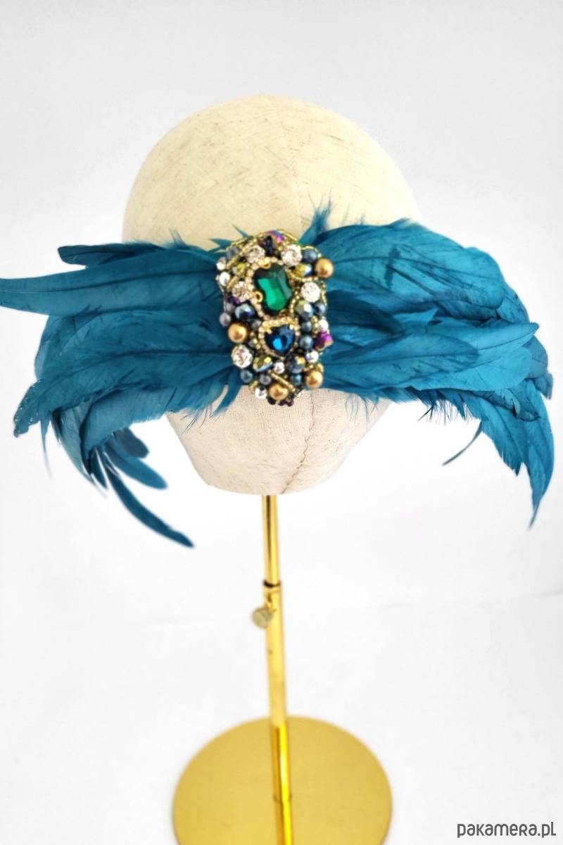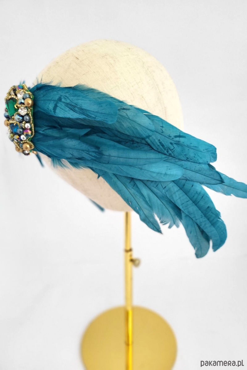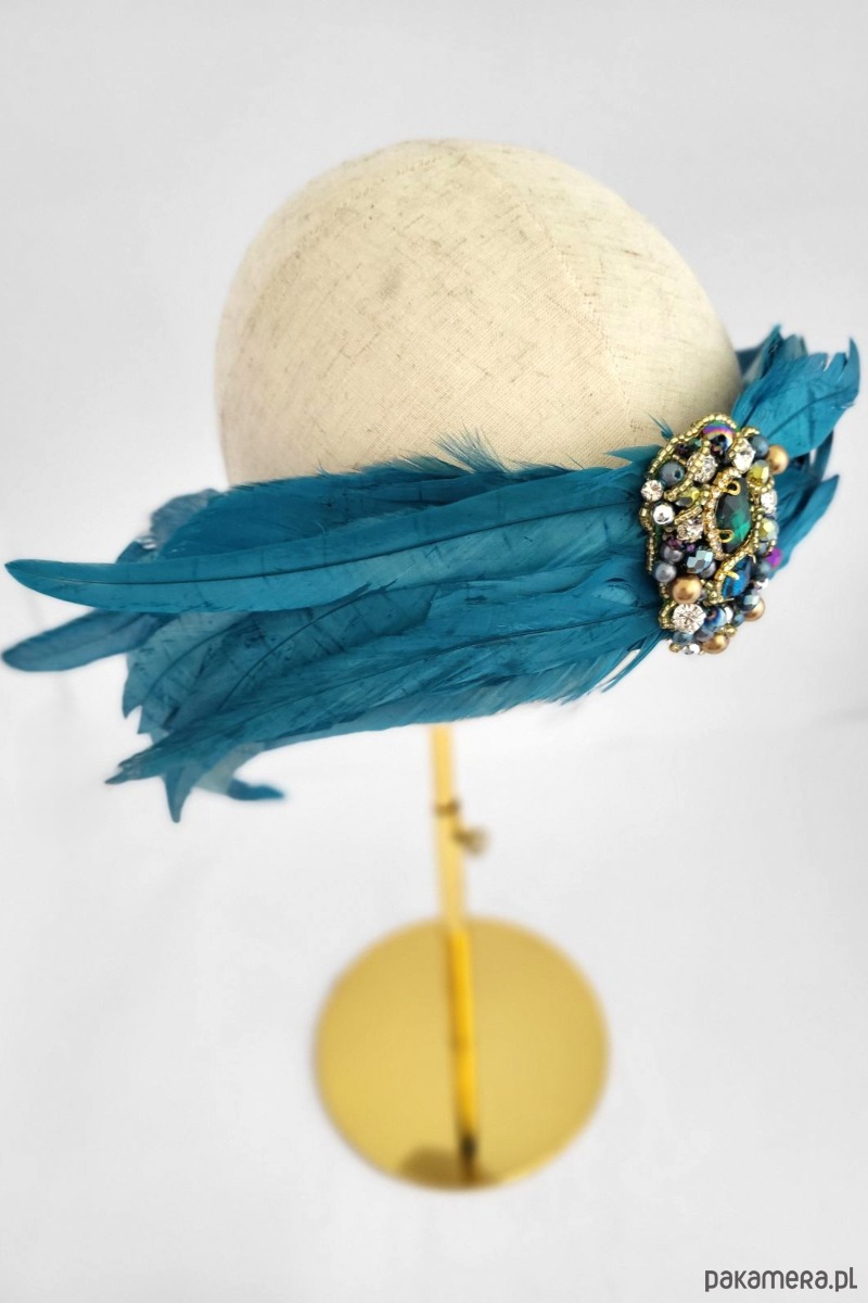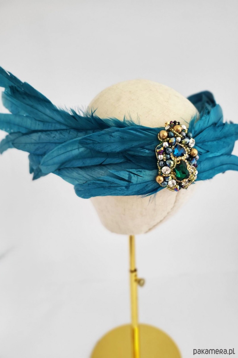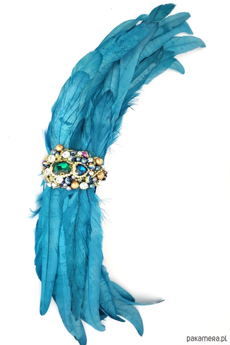Spinka z wyszyciem z pięknych piór. Zrobiona w całości w naszej pracowni. Dekoracyjna, błyszcząca i oryginalna.