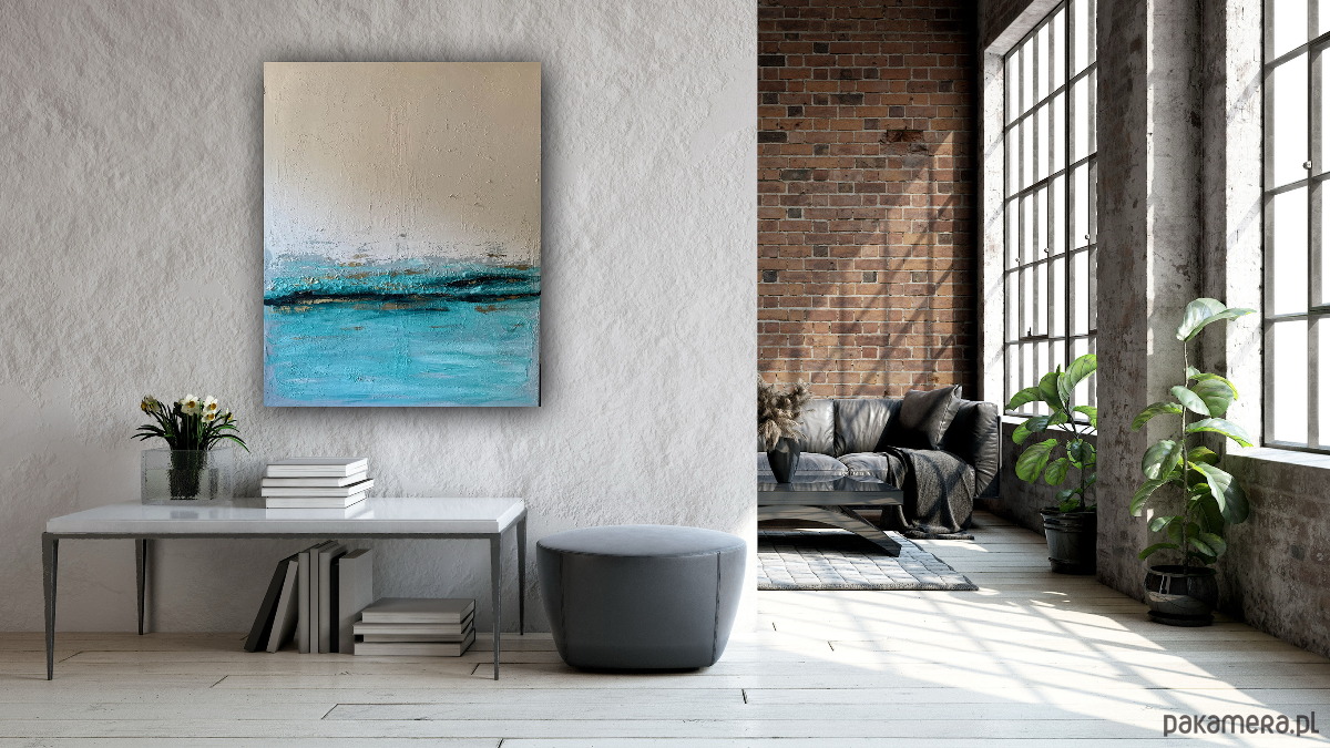 Duży obraz na bawełnianym płótnie, wyraźna struktura, akryl, wymiary 100 x 80 cm.