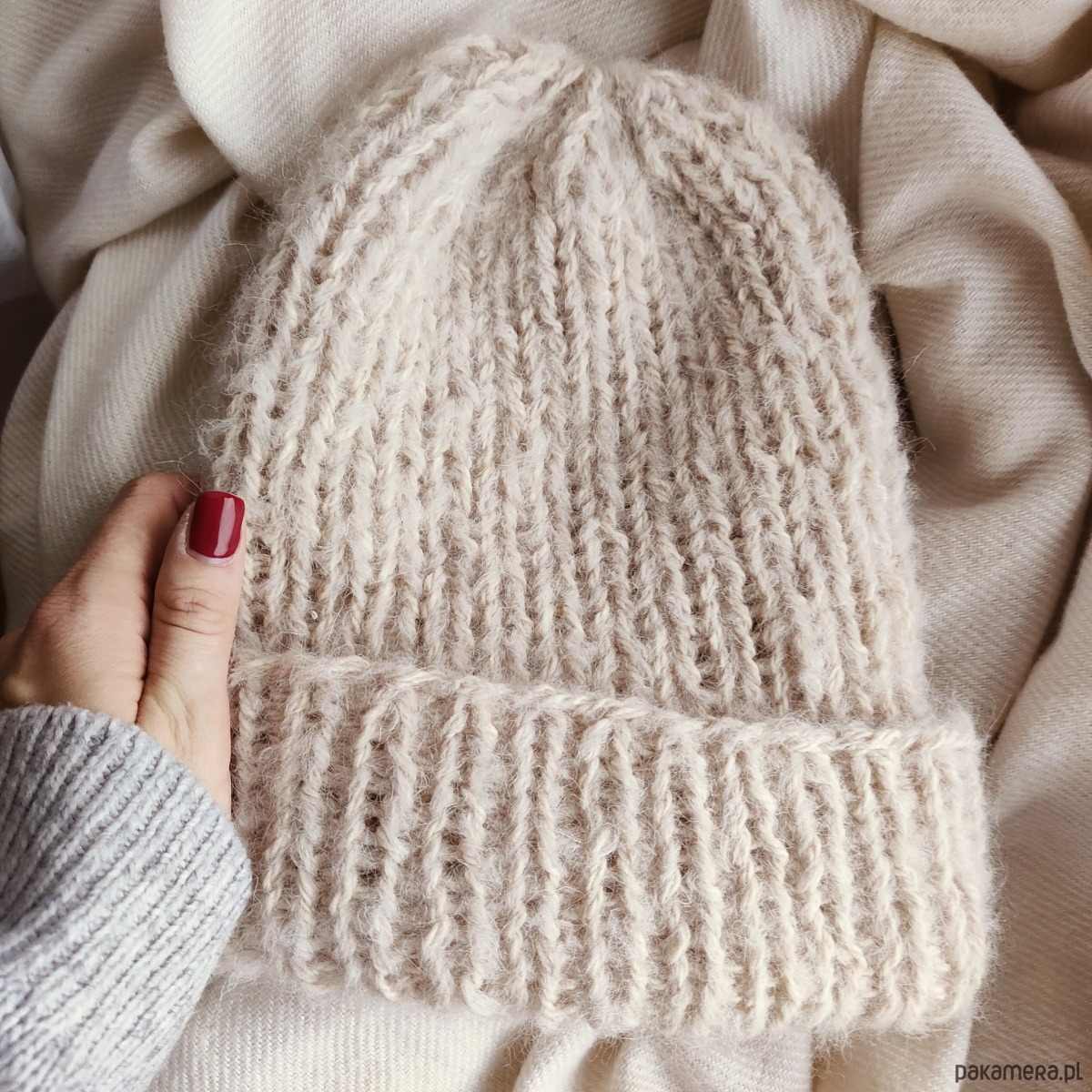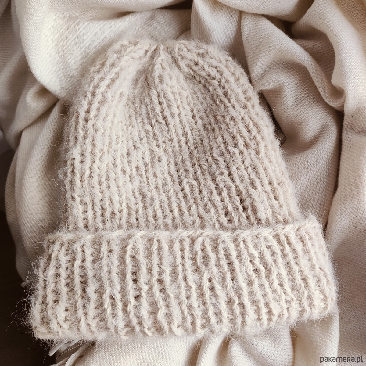 Beżowa czapka wełniana z wiskozą alpaką i wełną merino