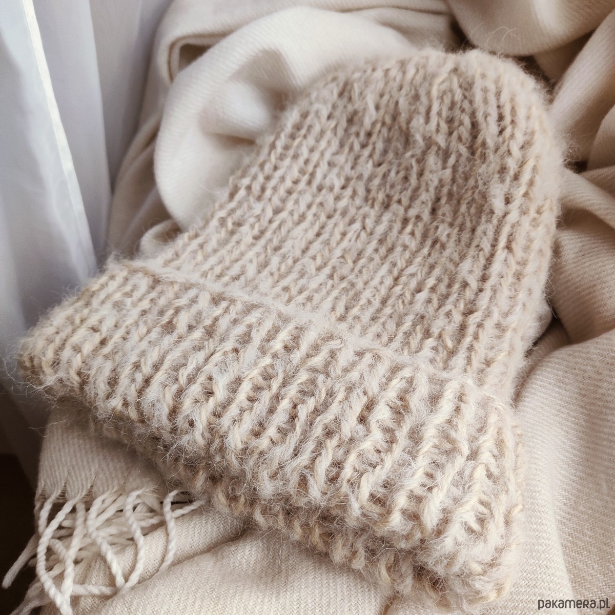 Beżowa czapka wełniana z wiskozą alpaką i wełną merino