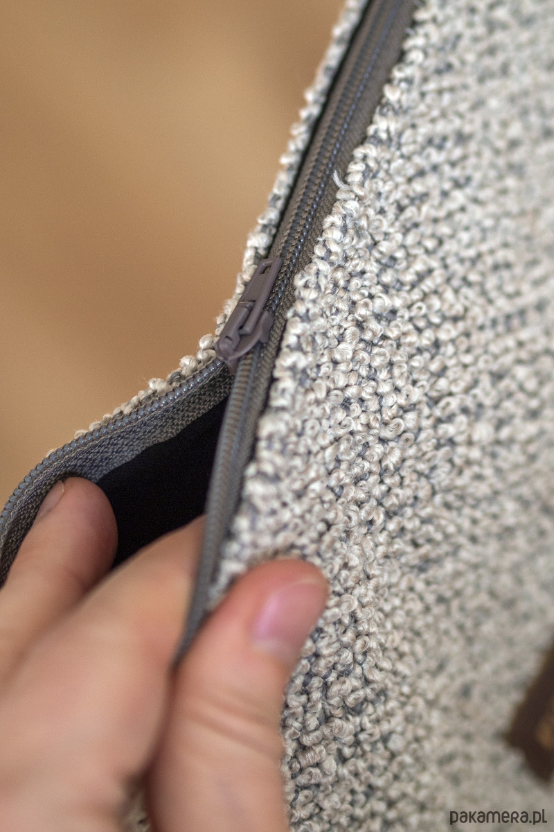 Kosmetyczka jest zapinana na suwak, w środku bawełniana podszewka.