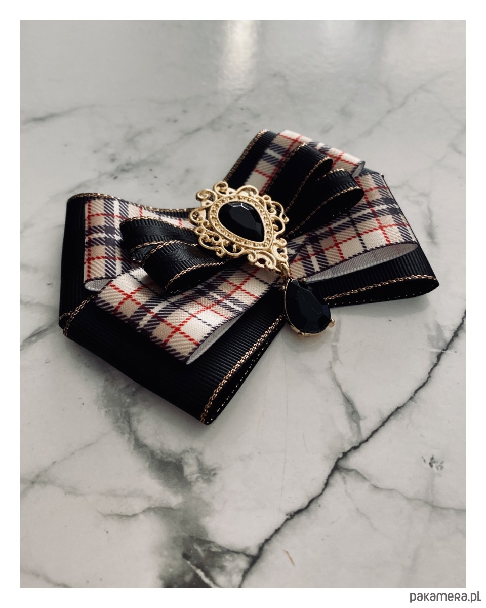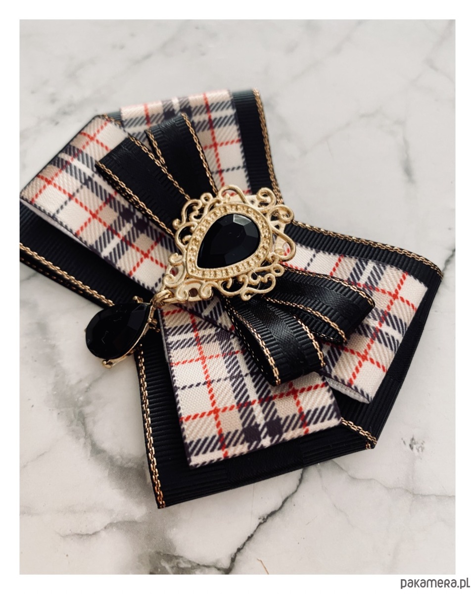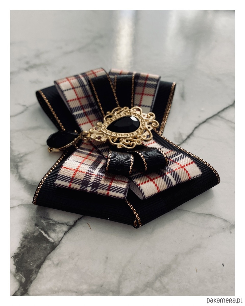 Broszka wykonana z wysokiej jakości taśm i dodatków.