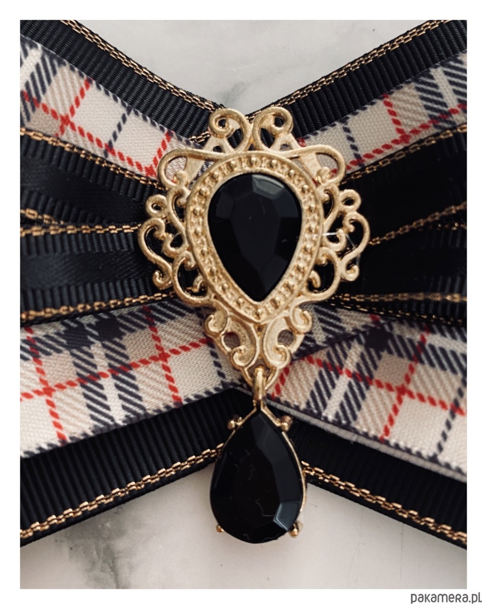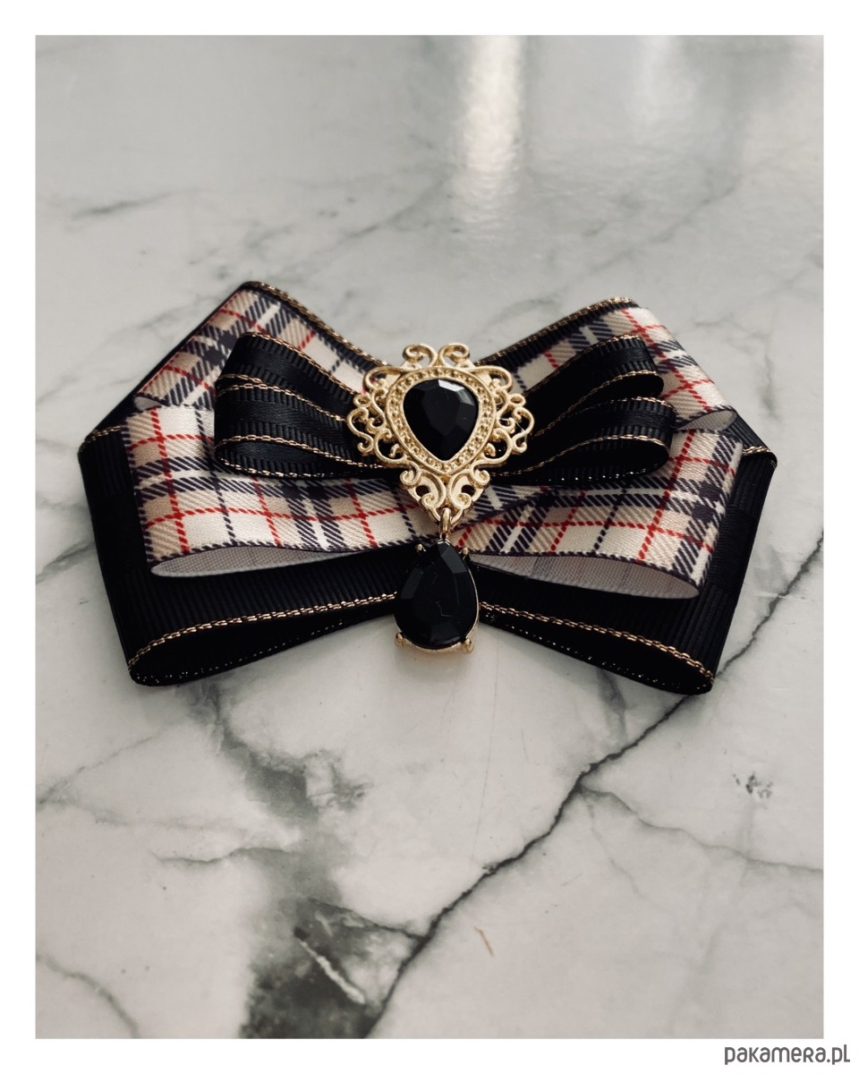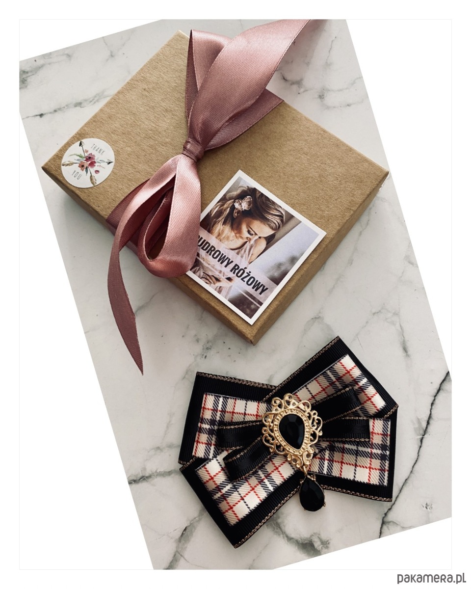 Broszka wykonana z wysokiej jakości taśm i dodatków.
