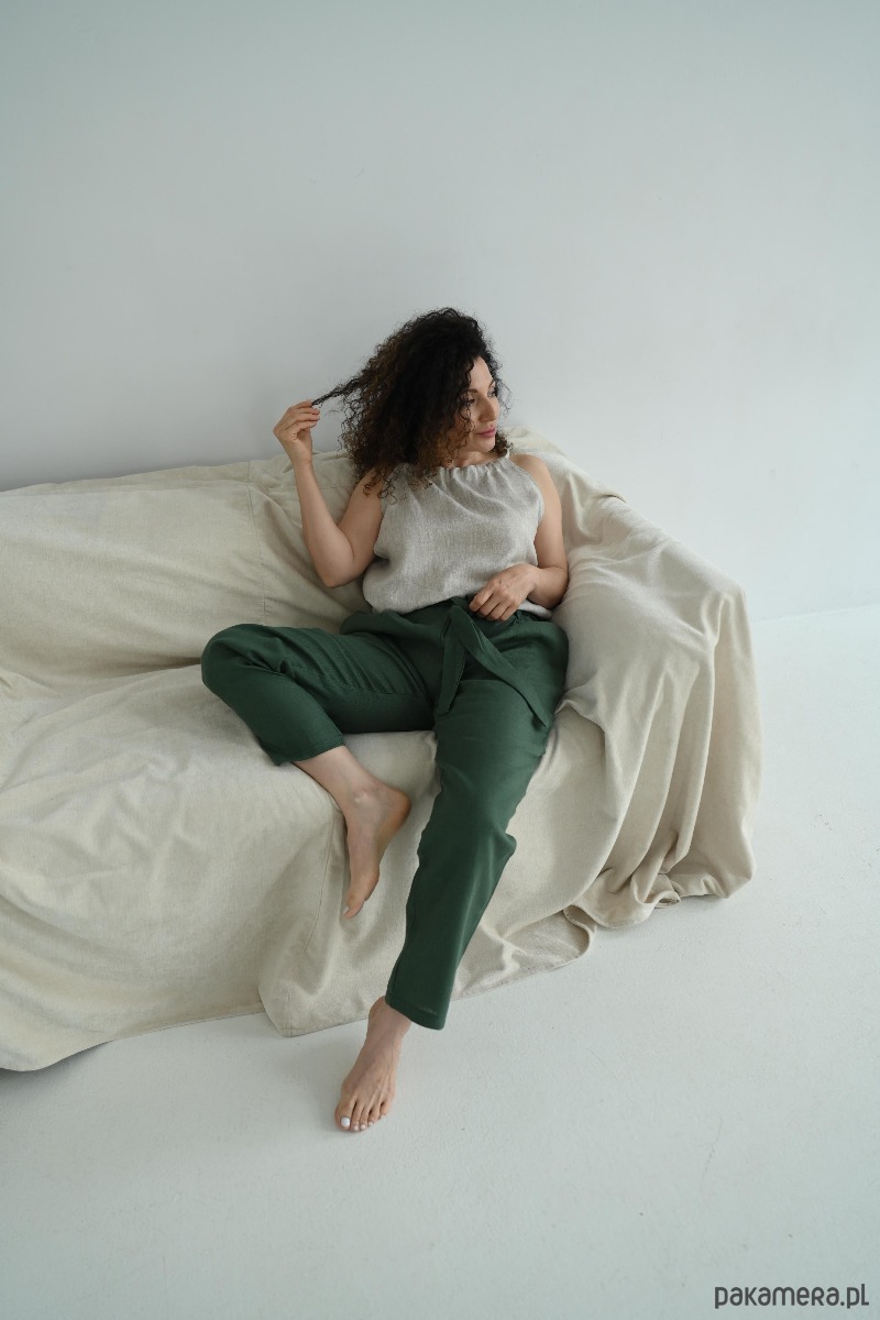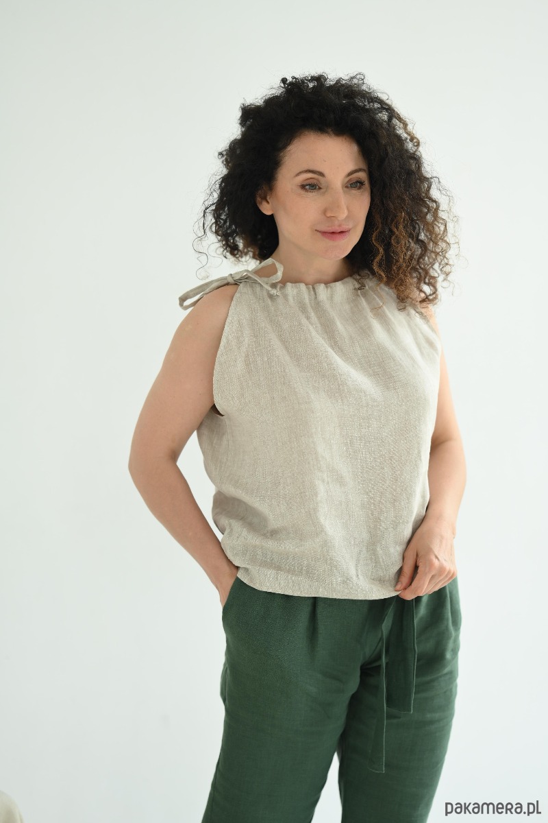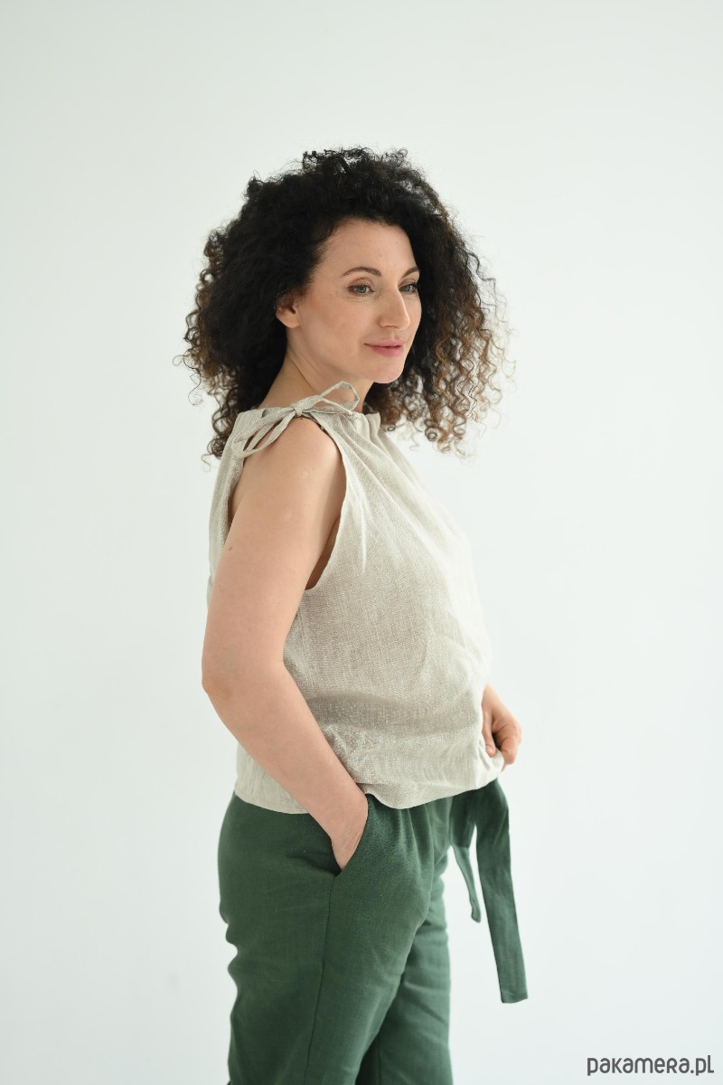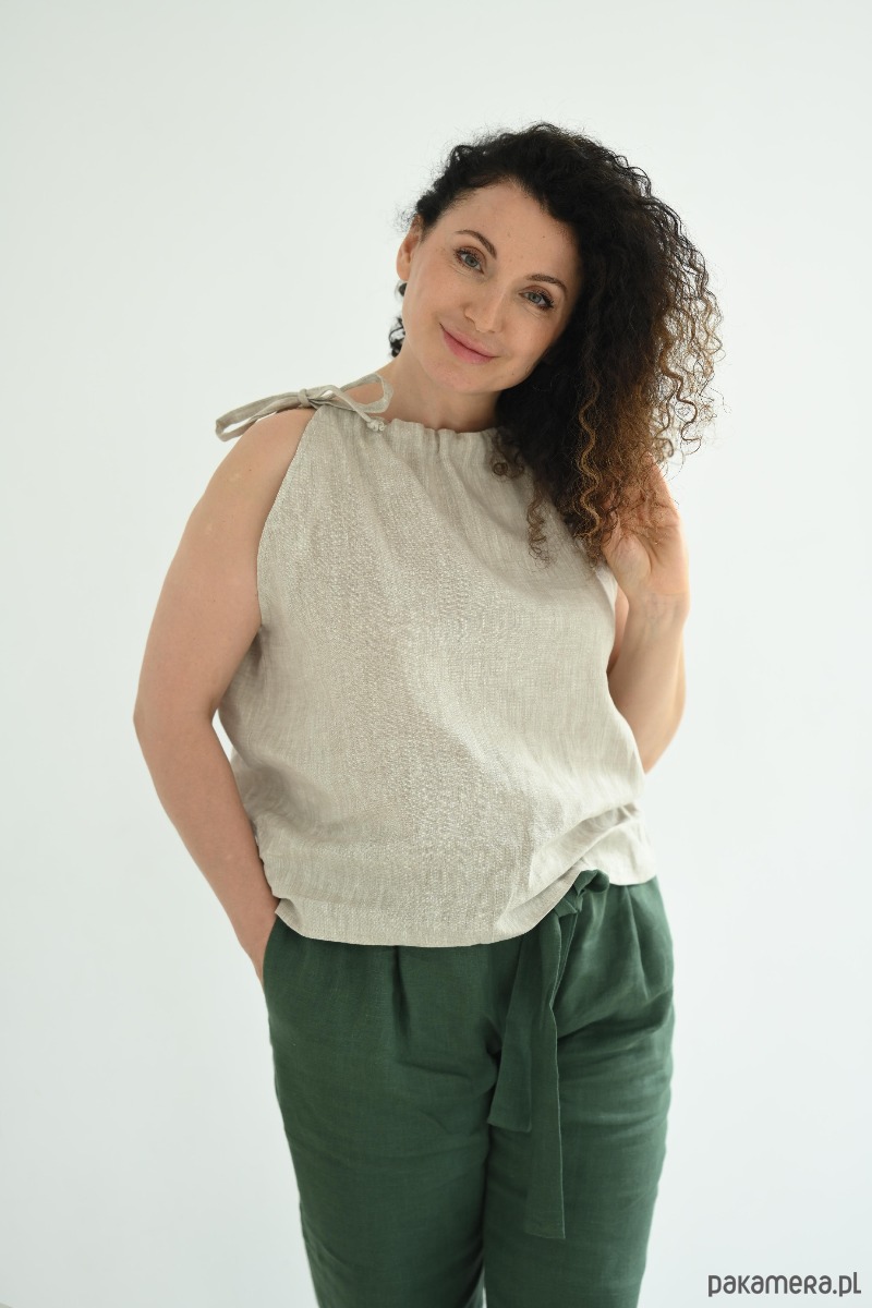 Beżowa lniana bluzka na ramiączkach