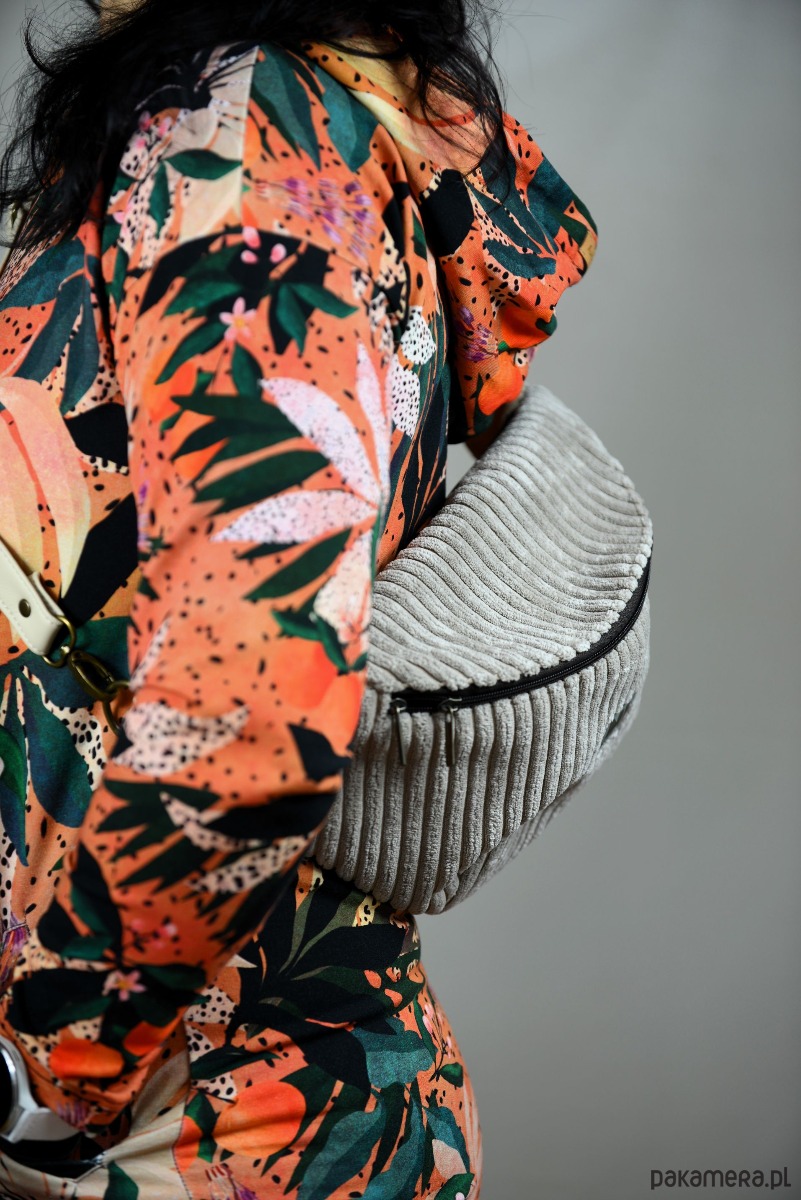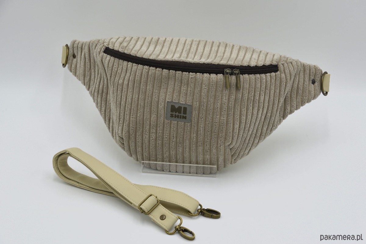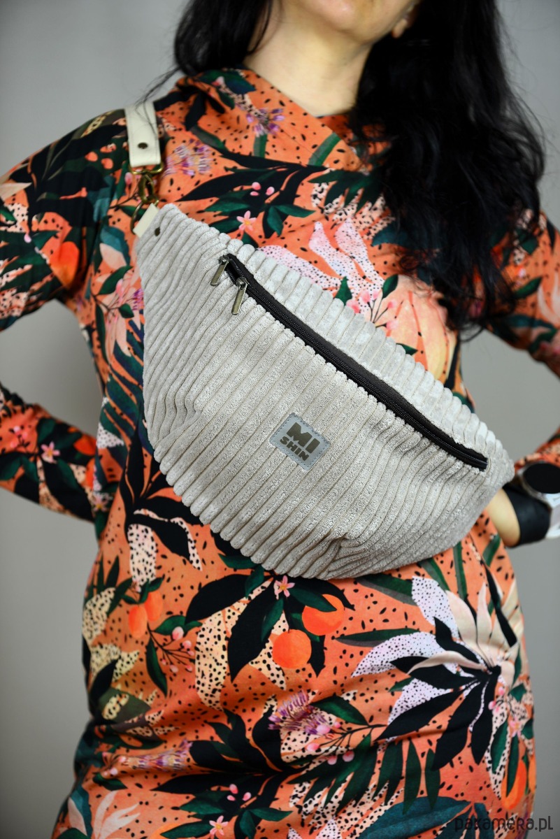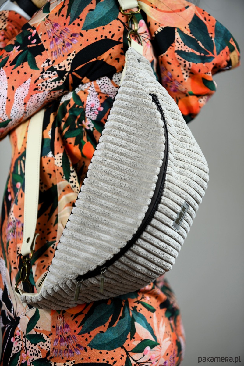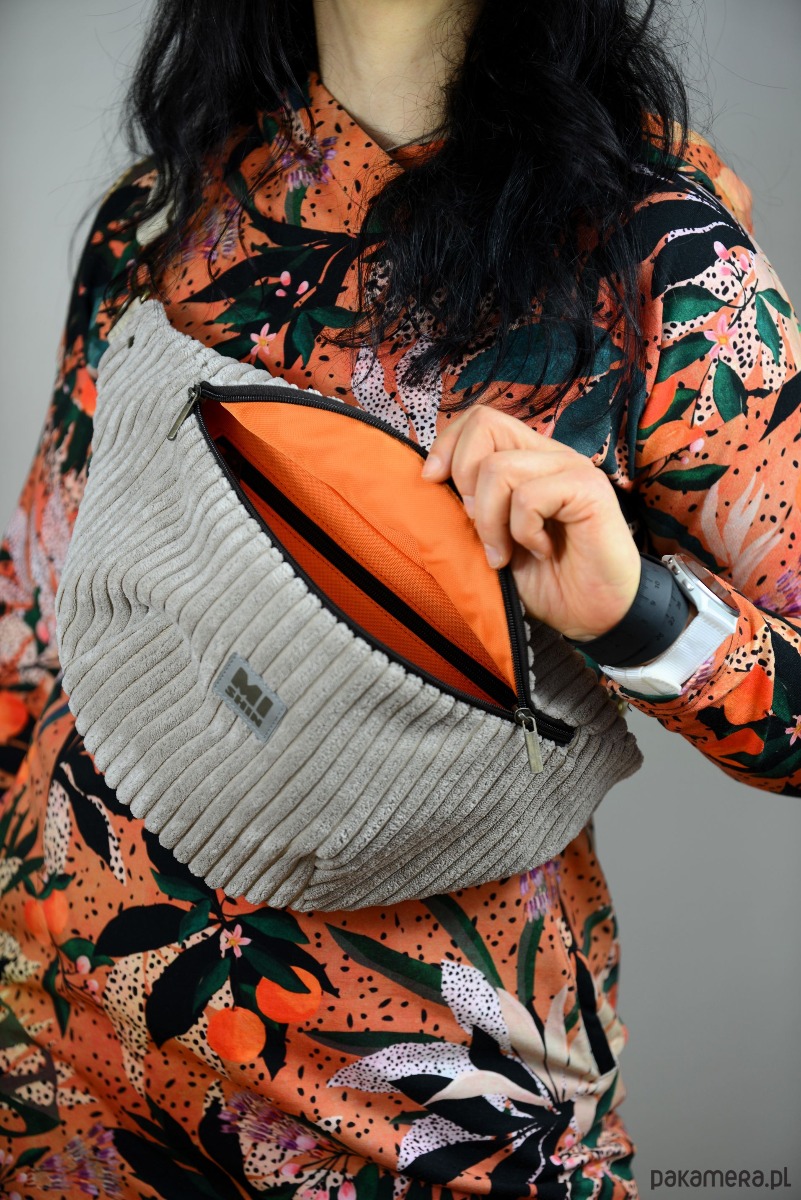 Beżowa nerka XL ze sztruksu, pomarańczowe wnętrze