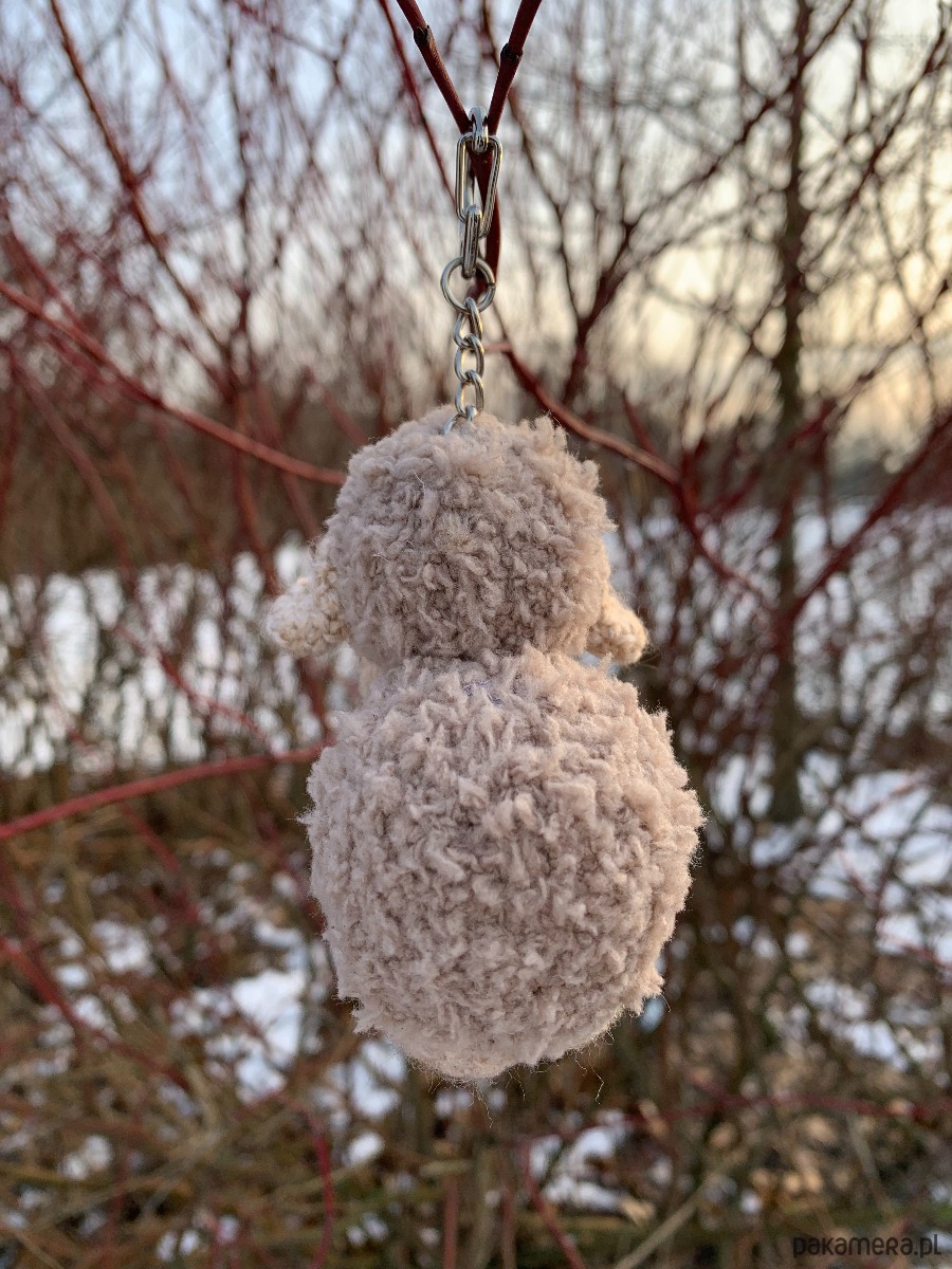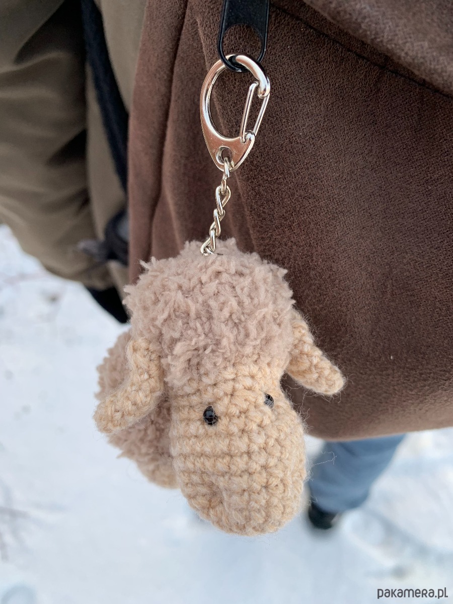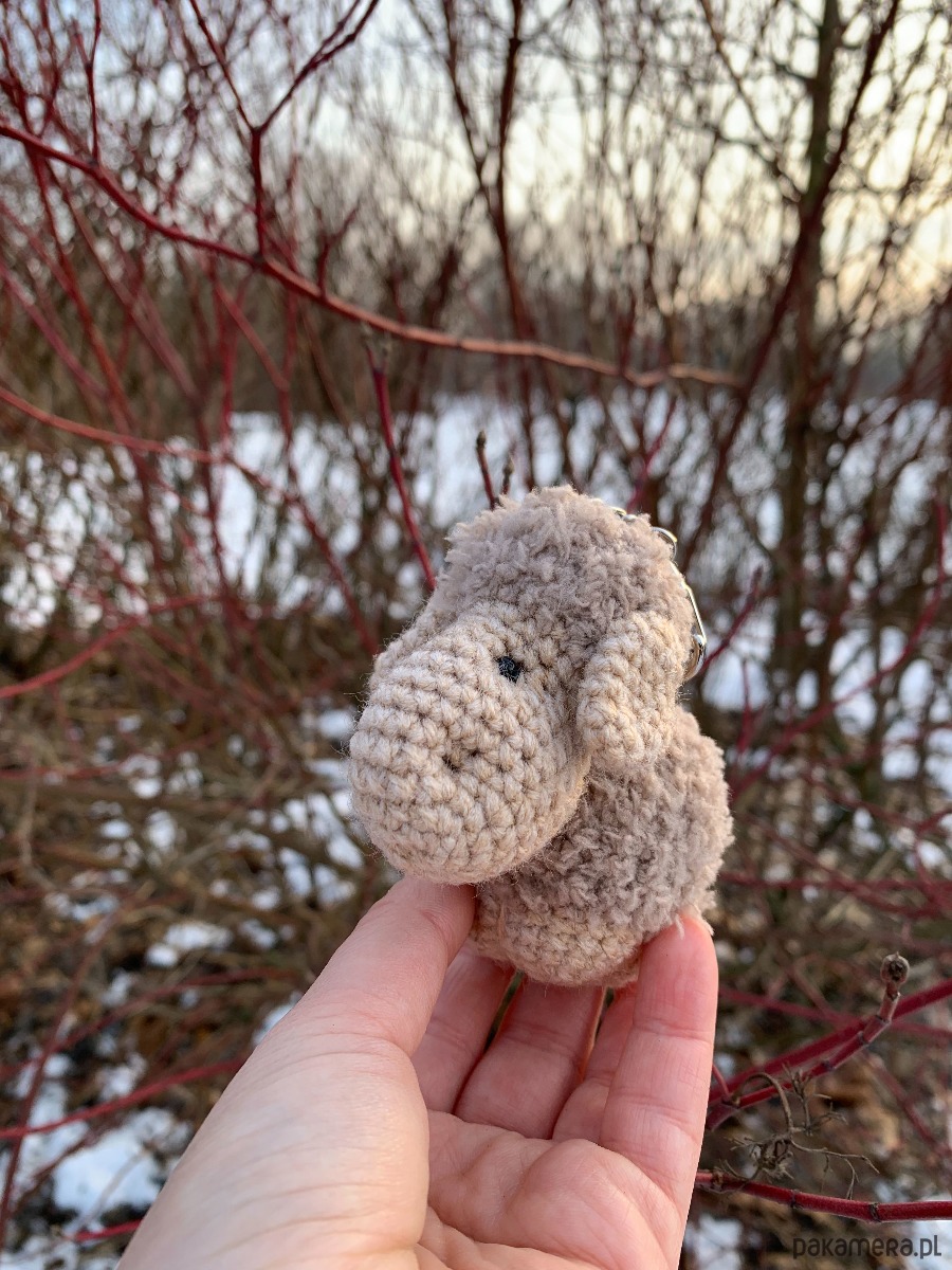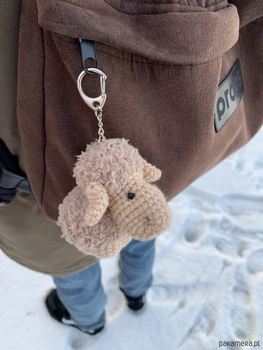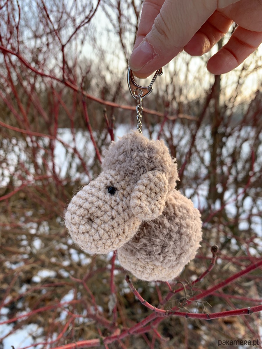 Uroczy brelok owieczka wykonany ręcznie z fantazyjnej włóczki na szydełku.