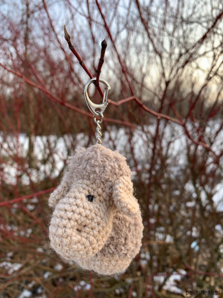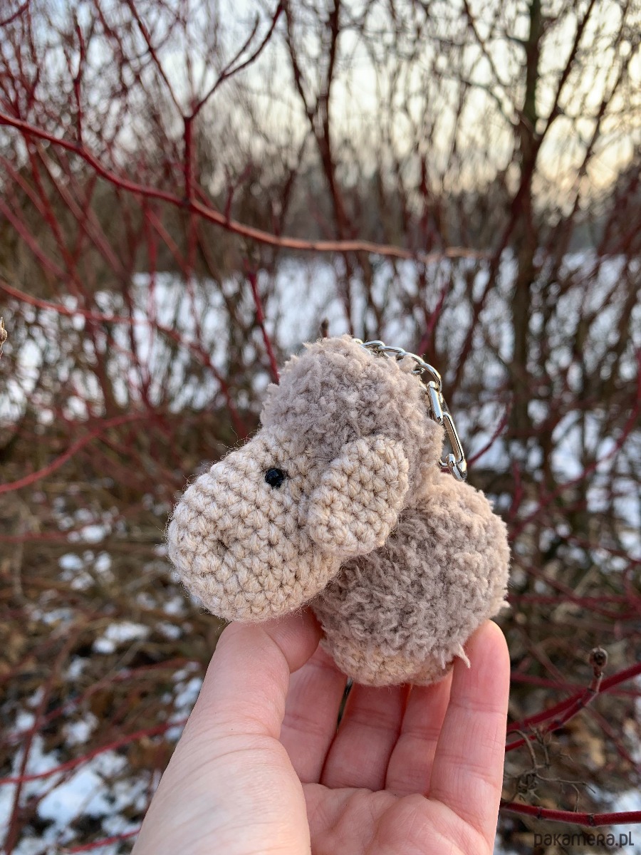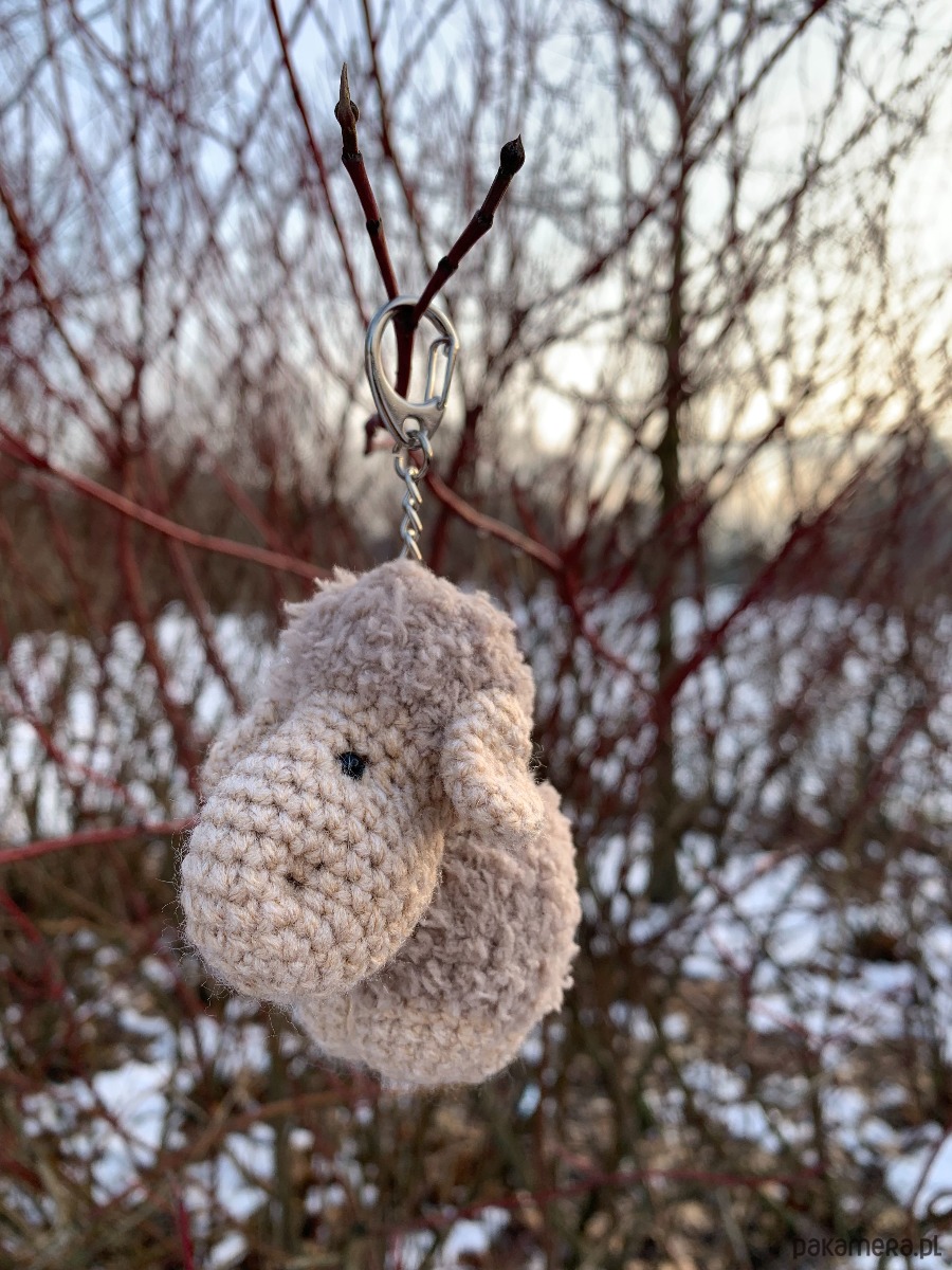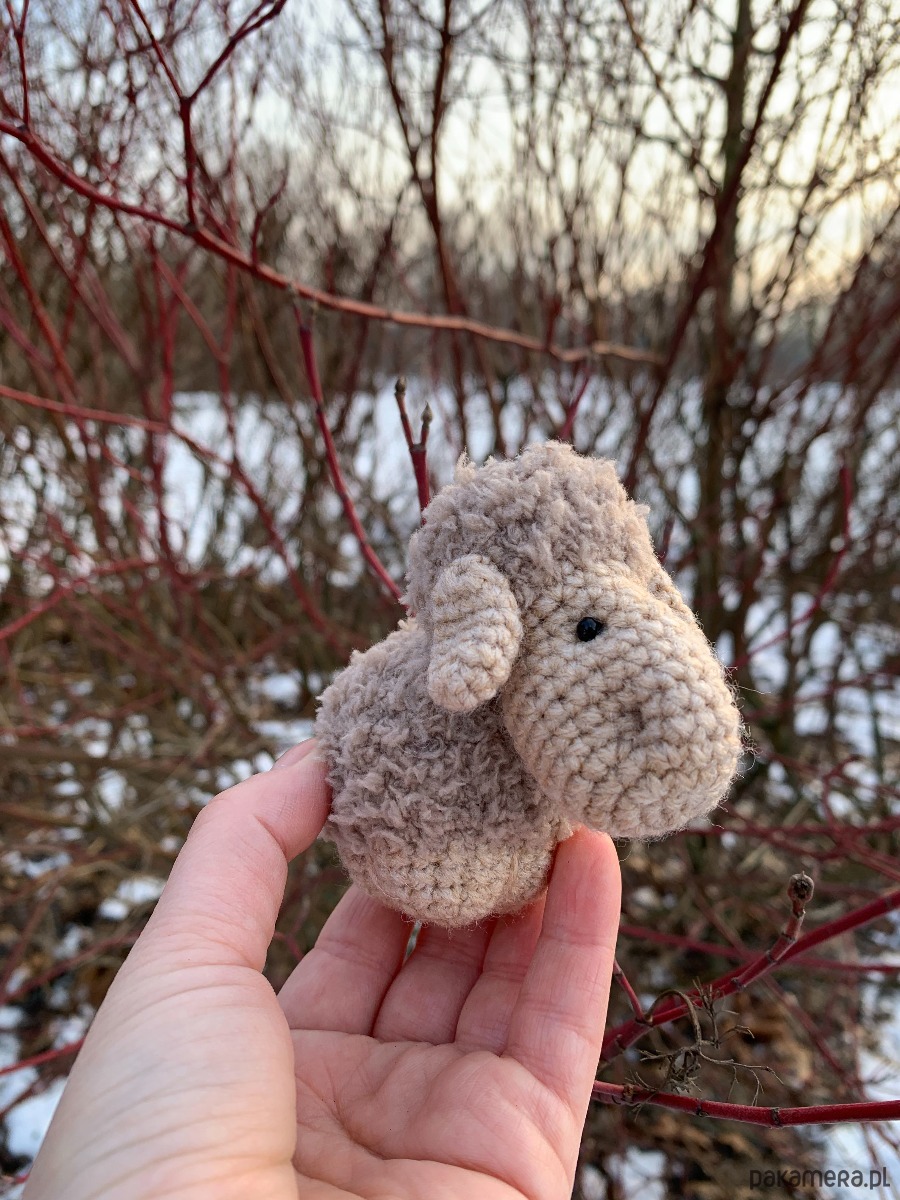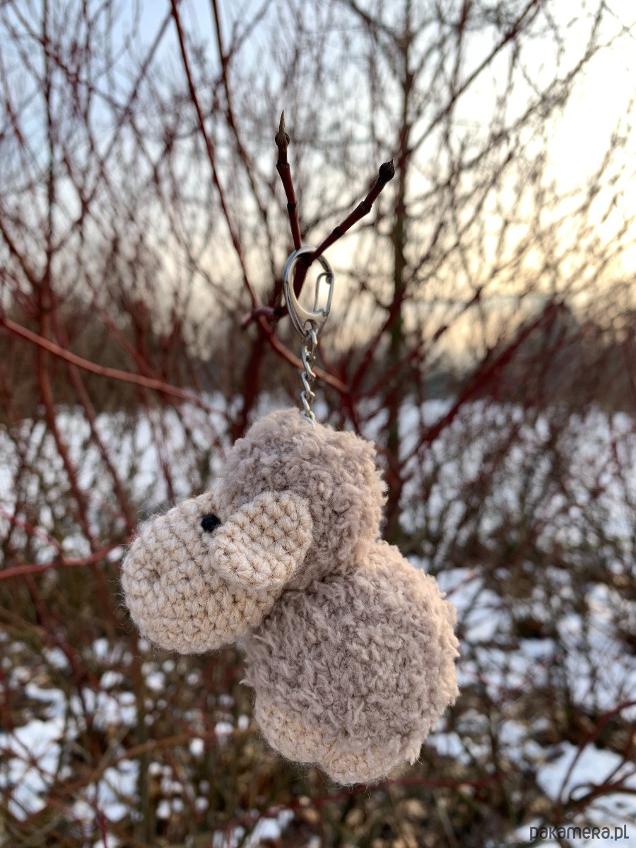 Uroczy brelok owieczka wykonany ręcznie z fantazyjnej włóczki na szydełku.
