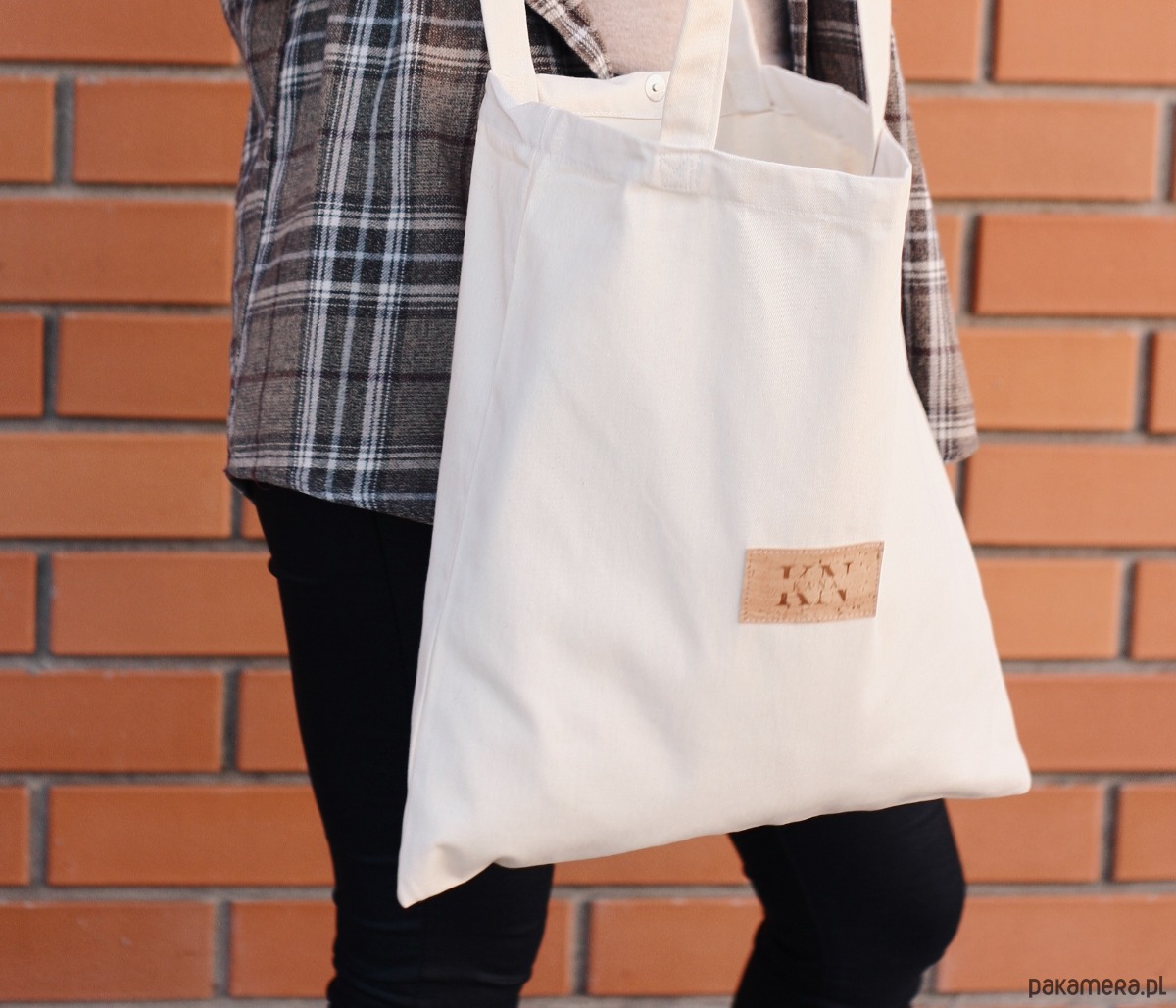 Na torbie naszyta jest ręcznie stemplowana naszywka z naszym logo. Naszywka wykonana jest z celulozy, która odporna jest na pranie. Torbę polecamy prać ręcznie.
