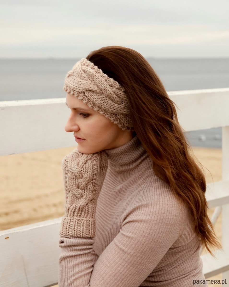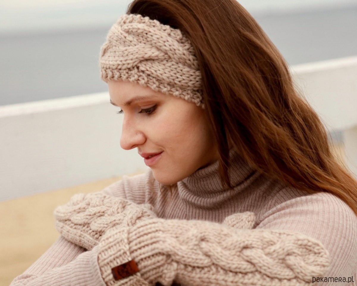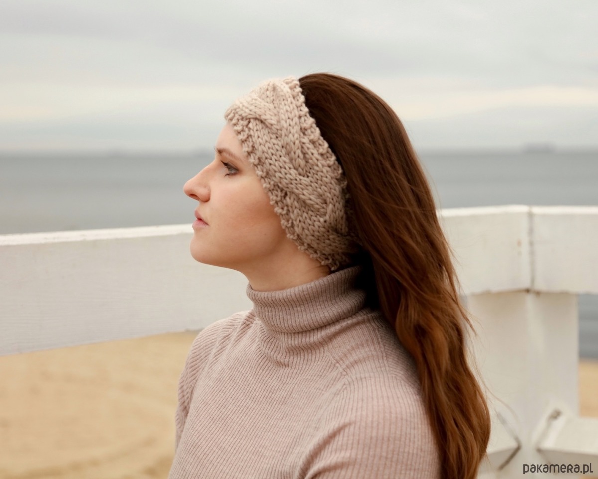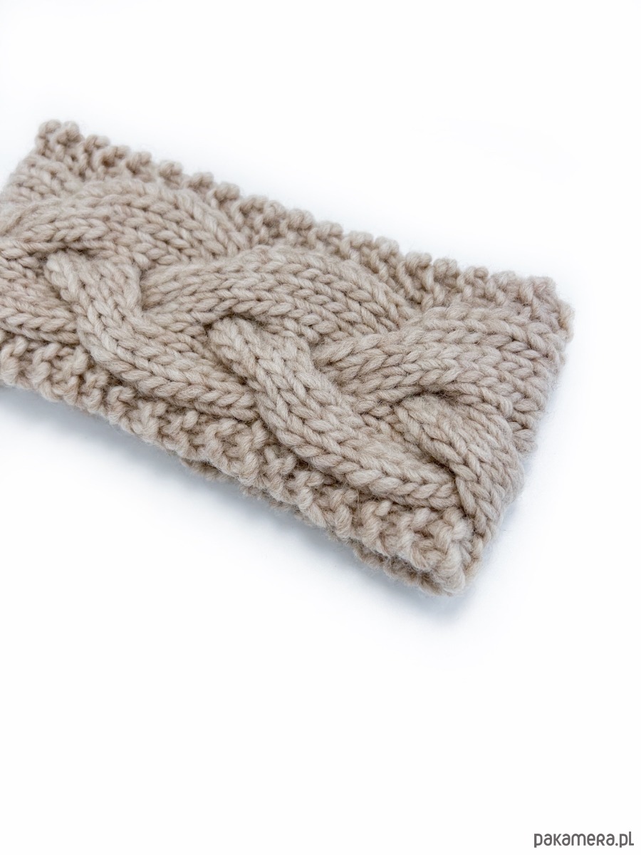 Beżowa wełniana opaska warkoczowa to produkt wykonany na drutach z miękkiej, 100% wełny peruwiańskiej w kolorze jasnego beżu. Jest ciepłym i eleganckim dodatkiem na głowę, który pięknie wygląda w przeróżnych konfiguracjach: noszony na włosach, pod włosami, do związanych w kucyk czy splecionych w warkocz. Wzór warkoczowy kojarzy się z zimowymi stylizacjami i pięknie podkreśli Twoją.