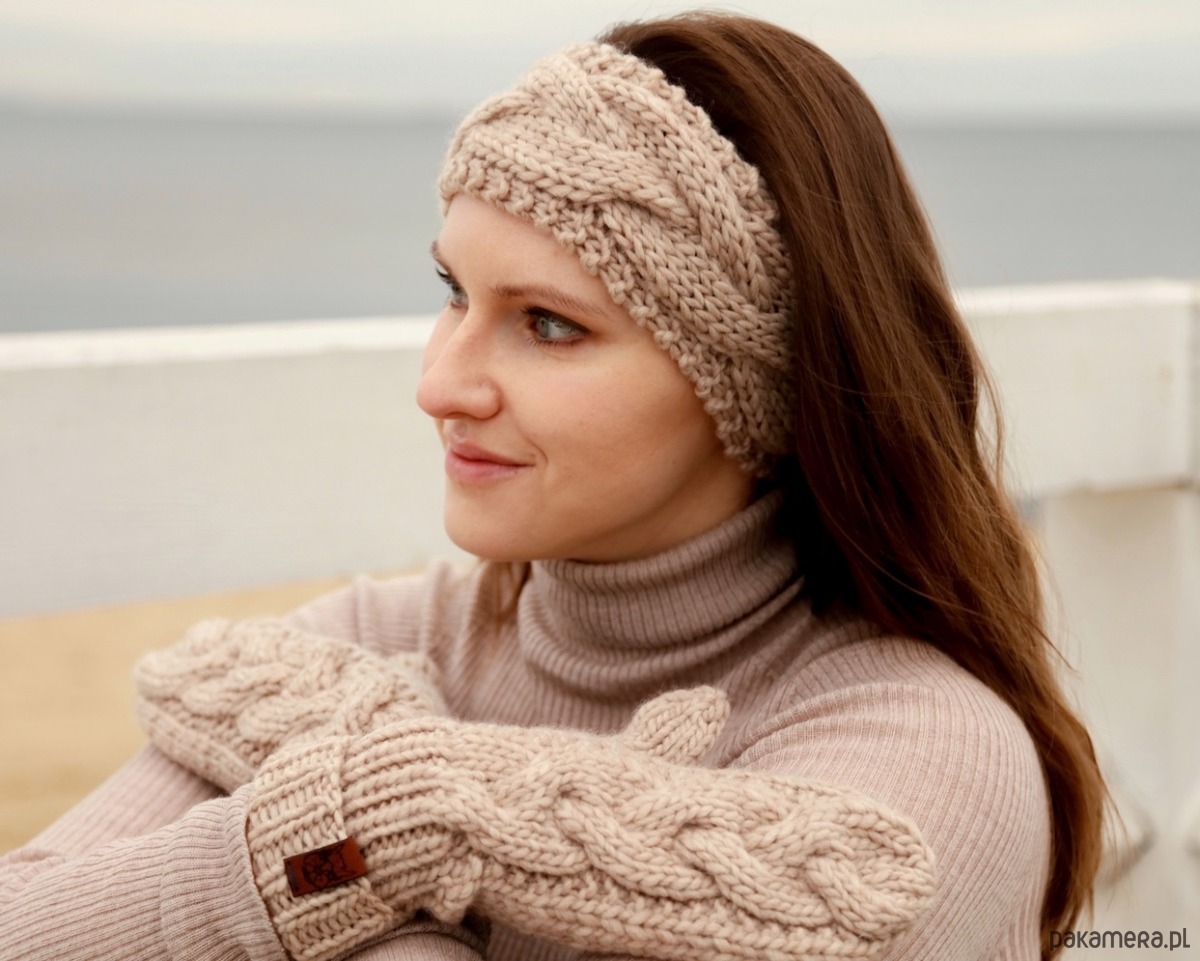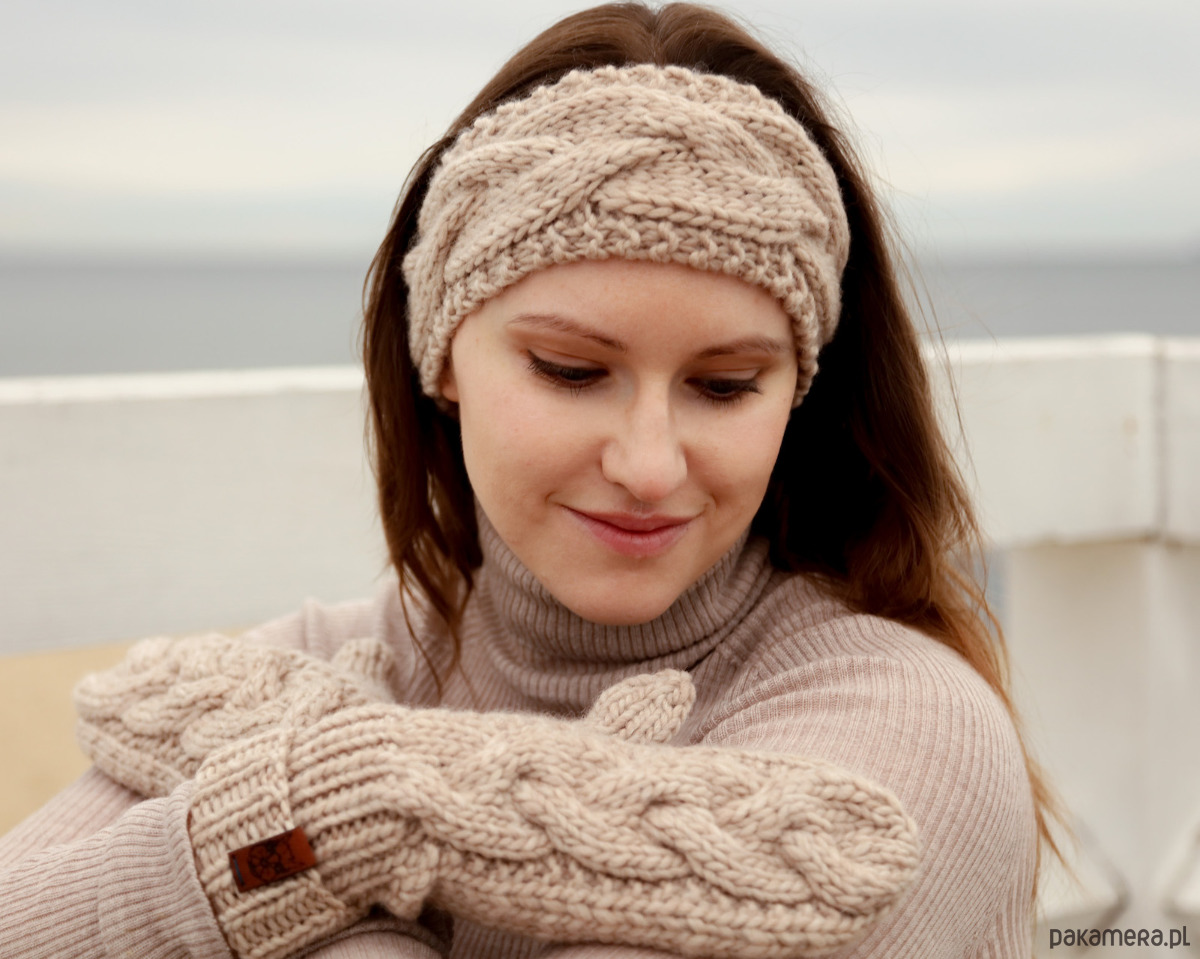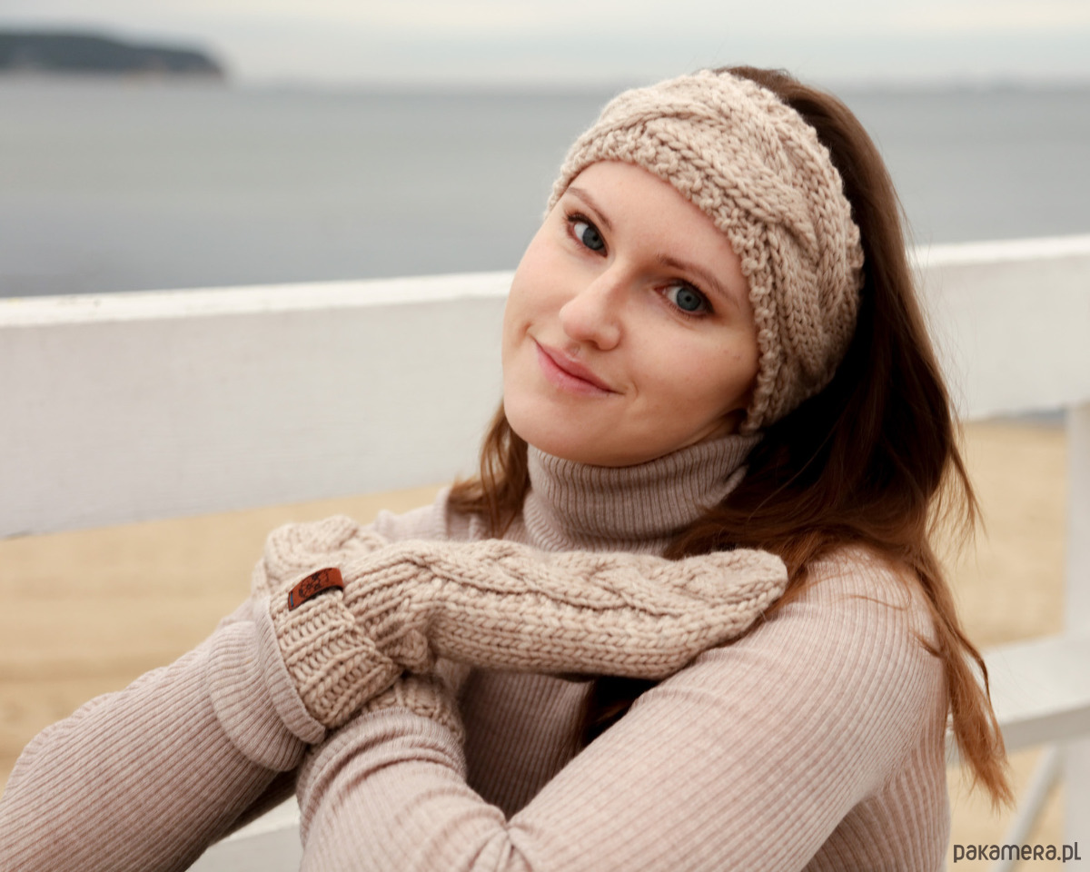 Beżowa wełniana opaska warkoczowa to produkt wykonany na drutach z miękkiej, 100% wełny peruwiańskiej w kolorze jasnego beżu. Jest ciepłym i eleganckim dodatkiem na głowę, który pięknie wygląda w przeróżnych konfiguracjach: noszony na włosach, pod włosami, do związanych w kucyk czy splecionych w warkocz. Wzór warkoczowy kojarzy się z zimowymi stylizacjami i pięknie podkreśli Twoją.