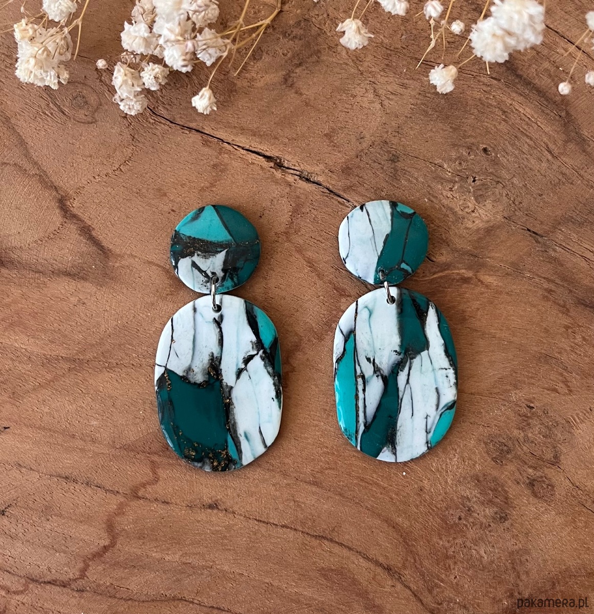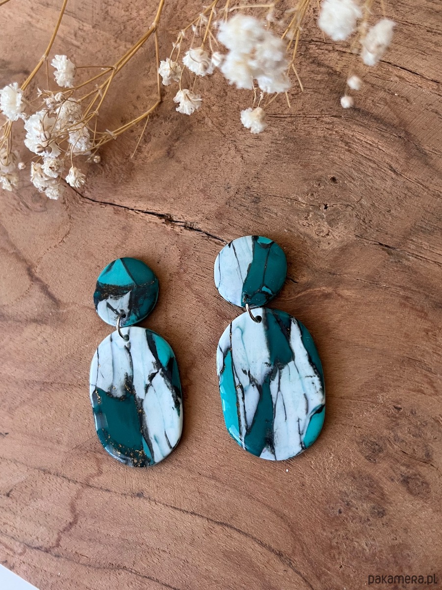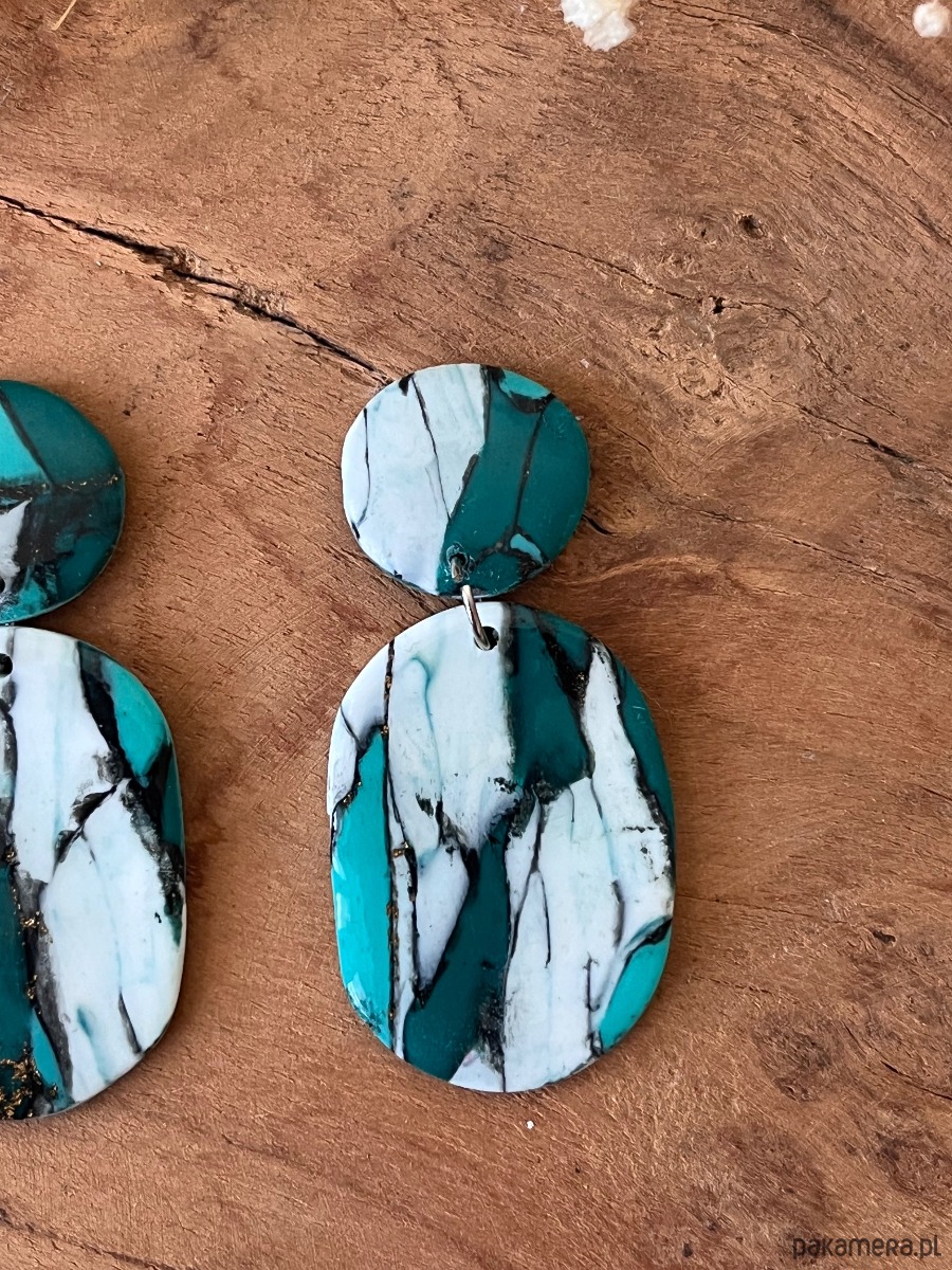 Kolczyki wykonane własnoręcznie z gliny polimerowej. To idealny wybór dla osób lubiących i ceniących oryginalną biżuterię. Są bardzo lekkie. Sztyfty ze stali chirurgicznej,