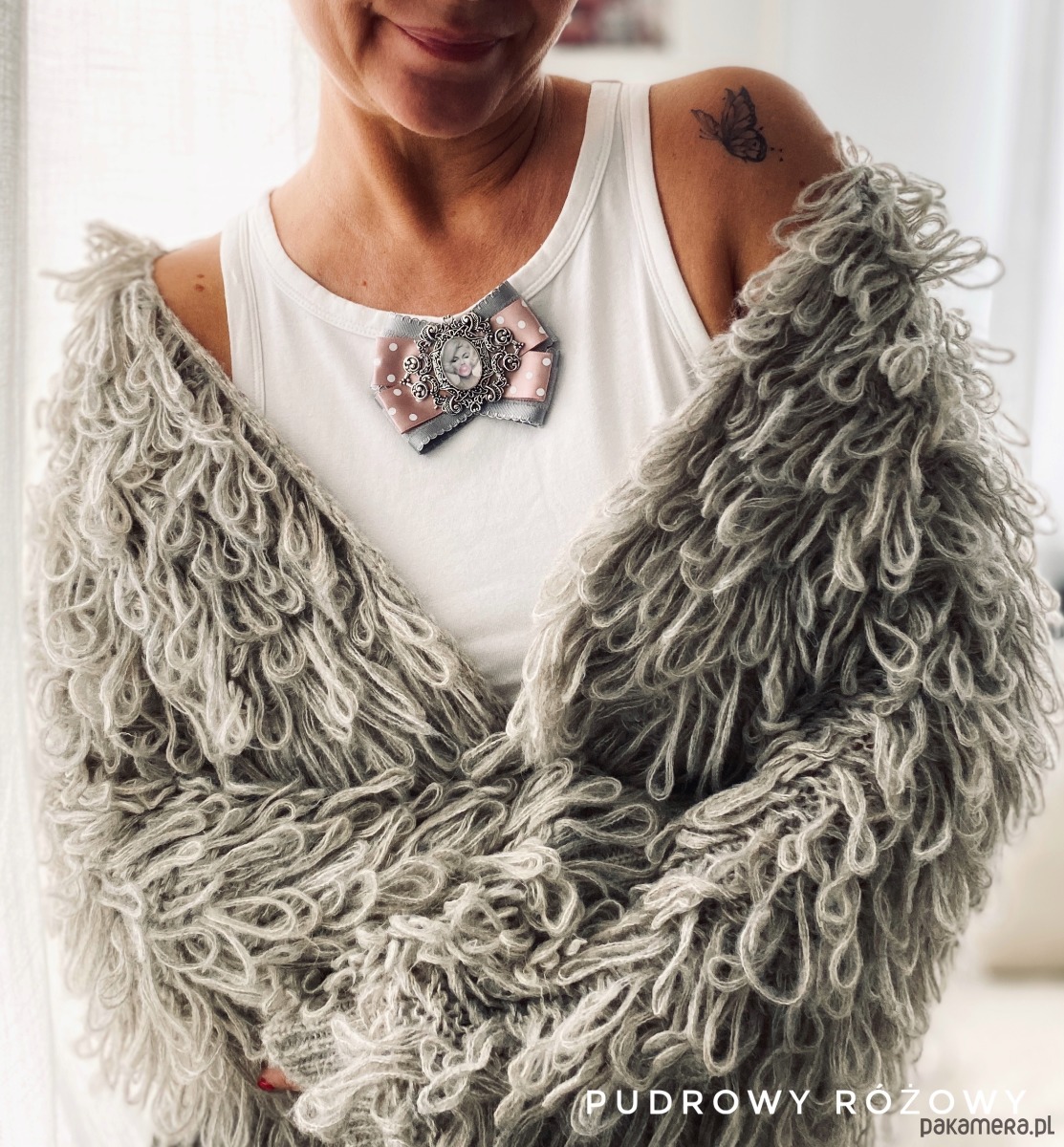 Broszka wykonana z wysokiej jakości taśm i dodatków.