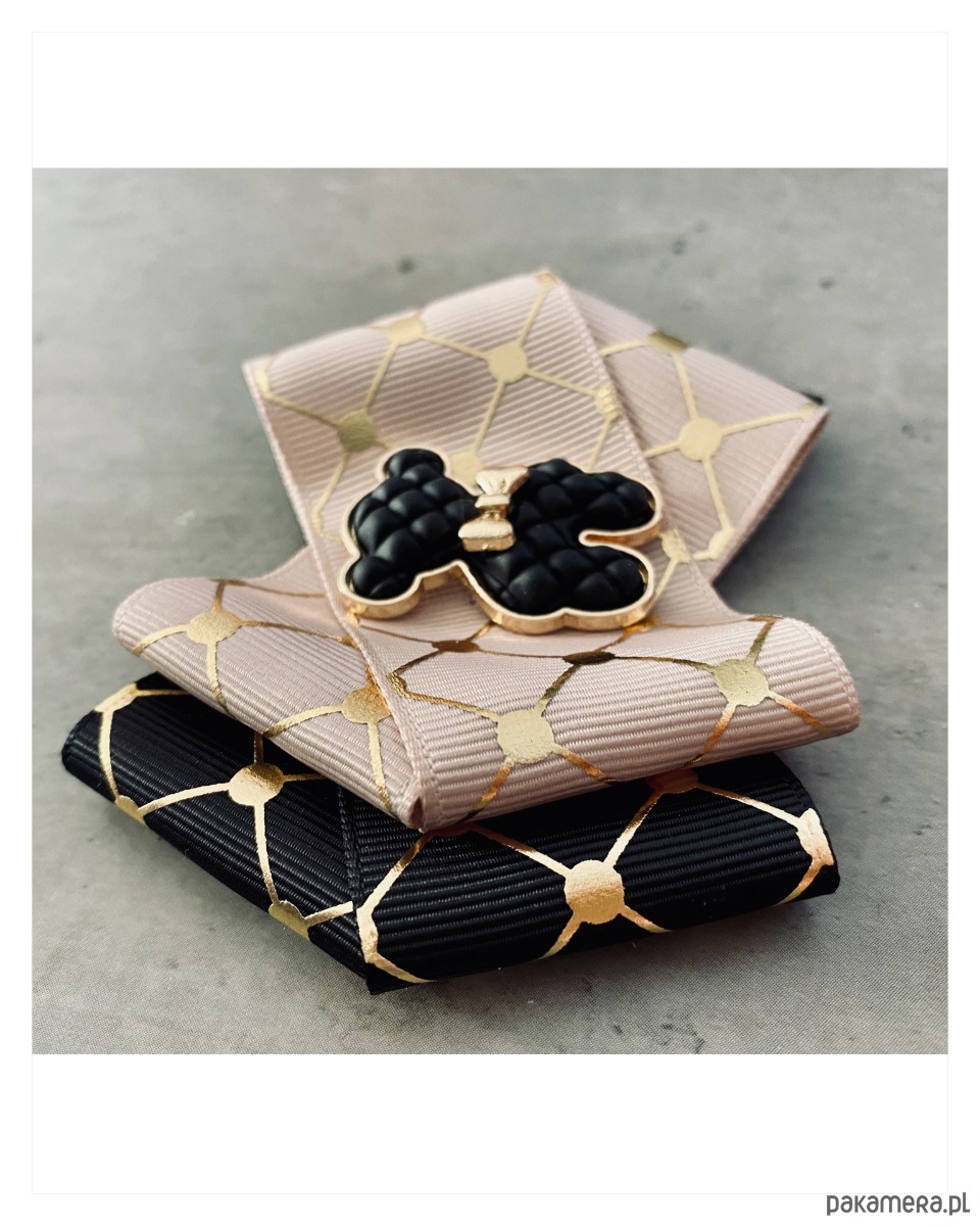 Broszka wykonana z wysokiej jakości taśm i dodatków.