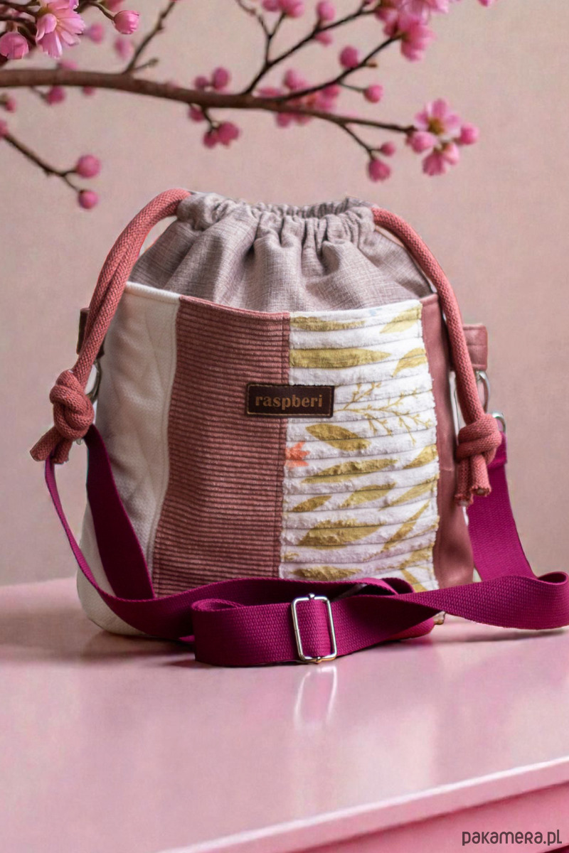 Beżowo-różowa patchworkowa listonoszka z kominem