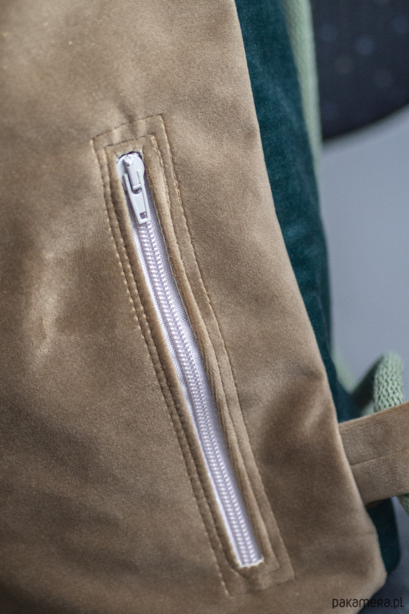 Beżowo-zielony plecak z przednią kieszenią z weluru
