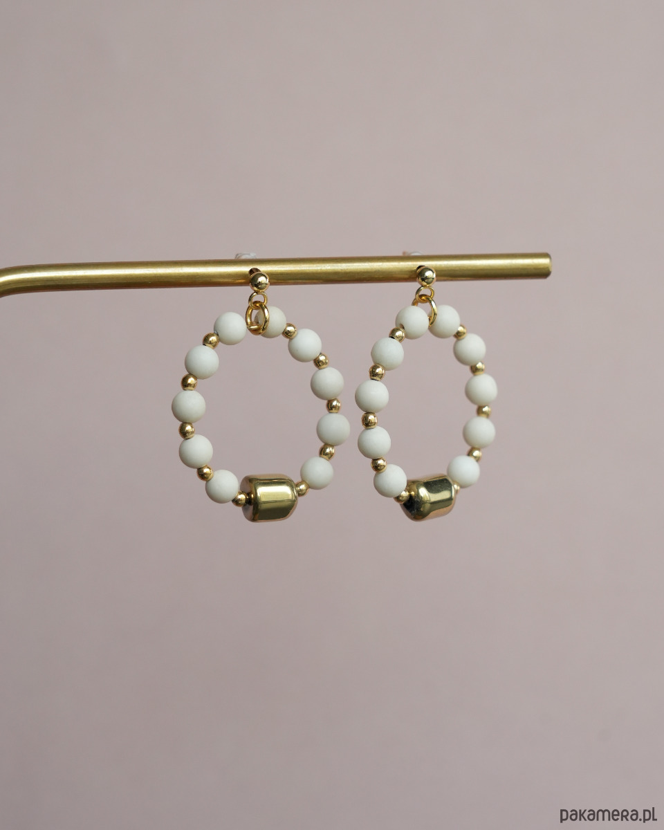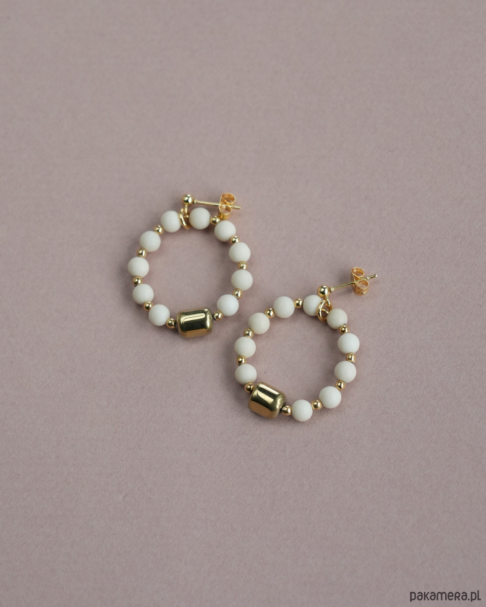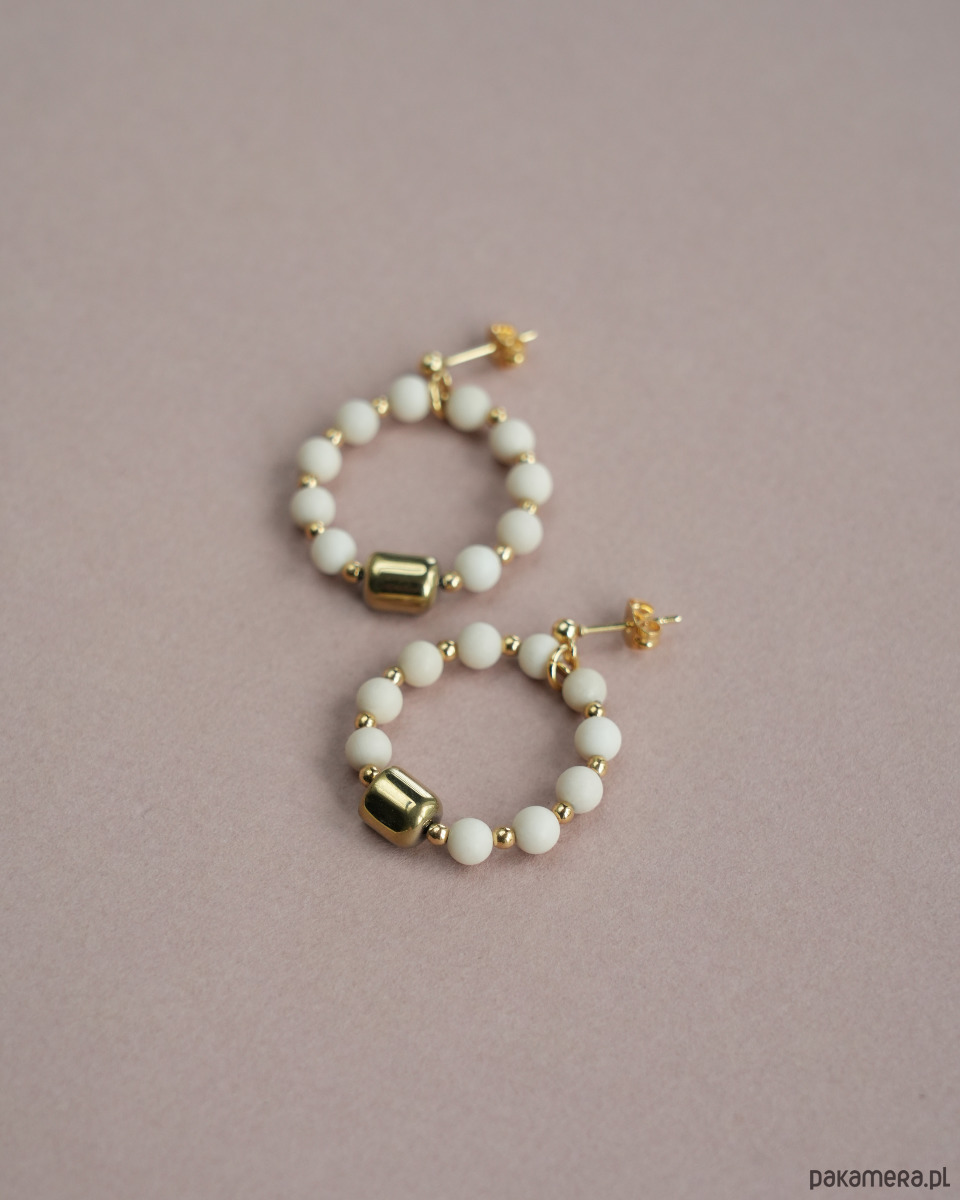Beżowo-złote kolczyki koła z kamienia rzecznego