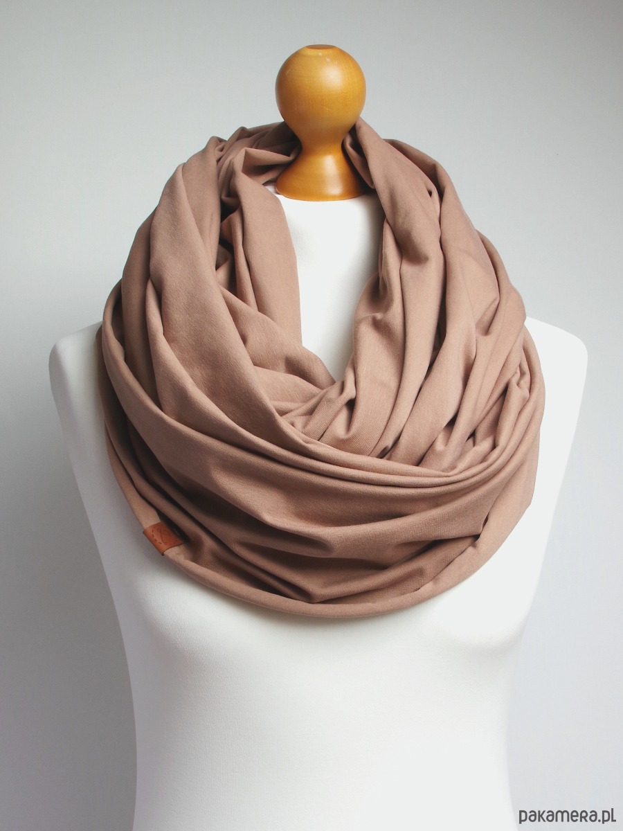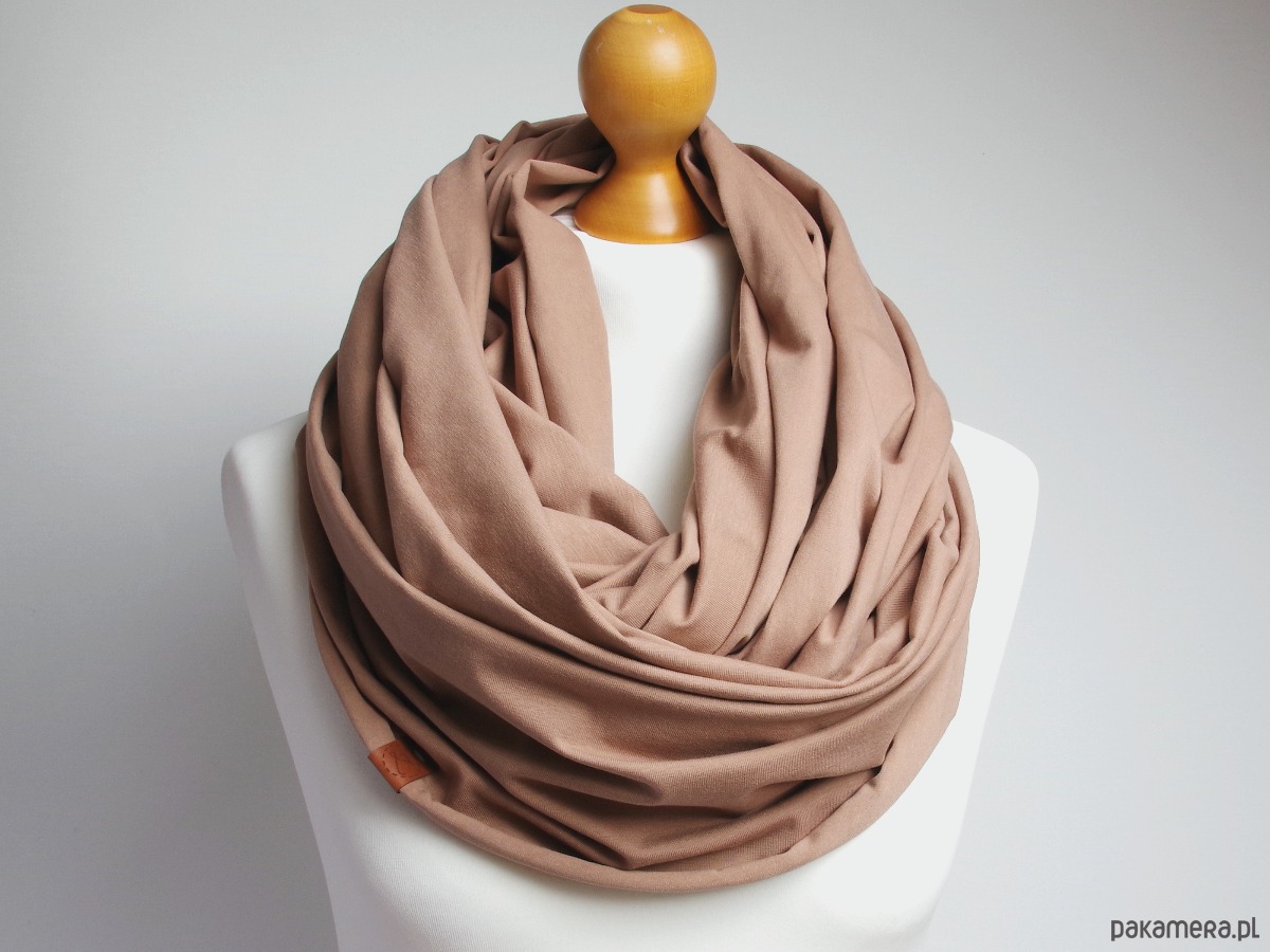 BEŻOWY komin damski na jesień, szalik bawełniany, duży komin oversize