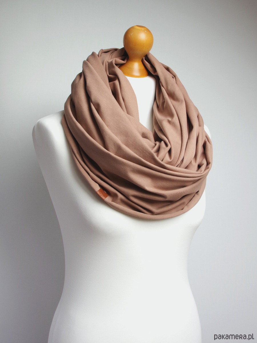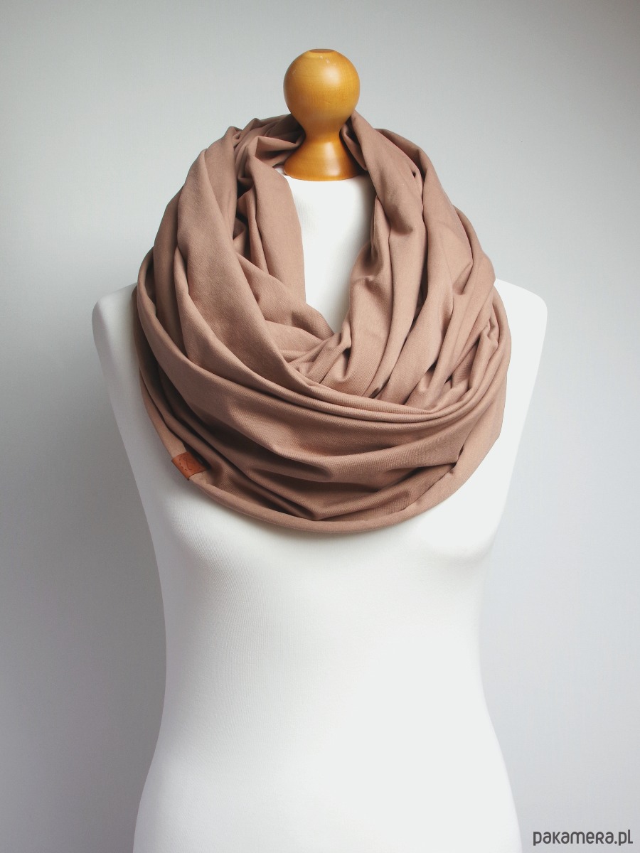 BEŻOWY komin damski na jesień, szalik bawełniany, duży komin oversize