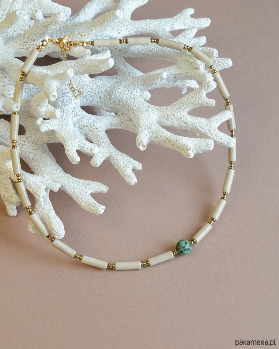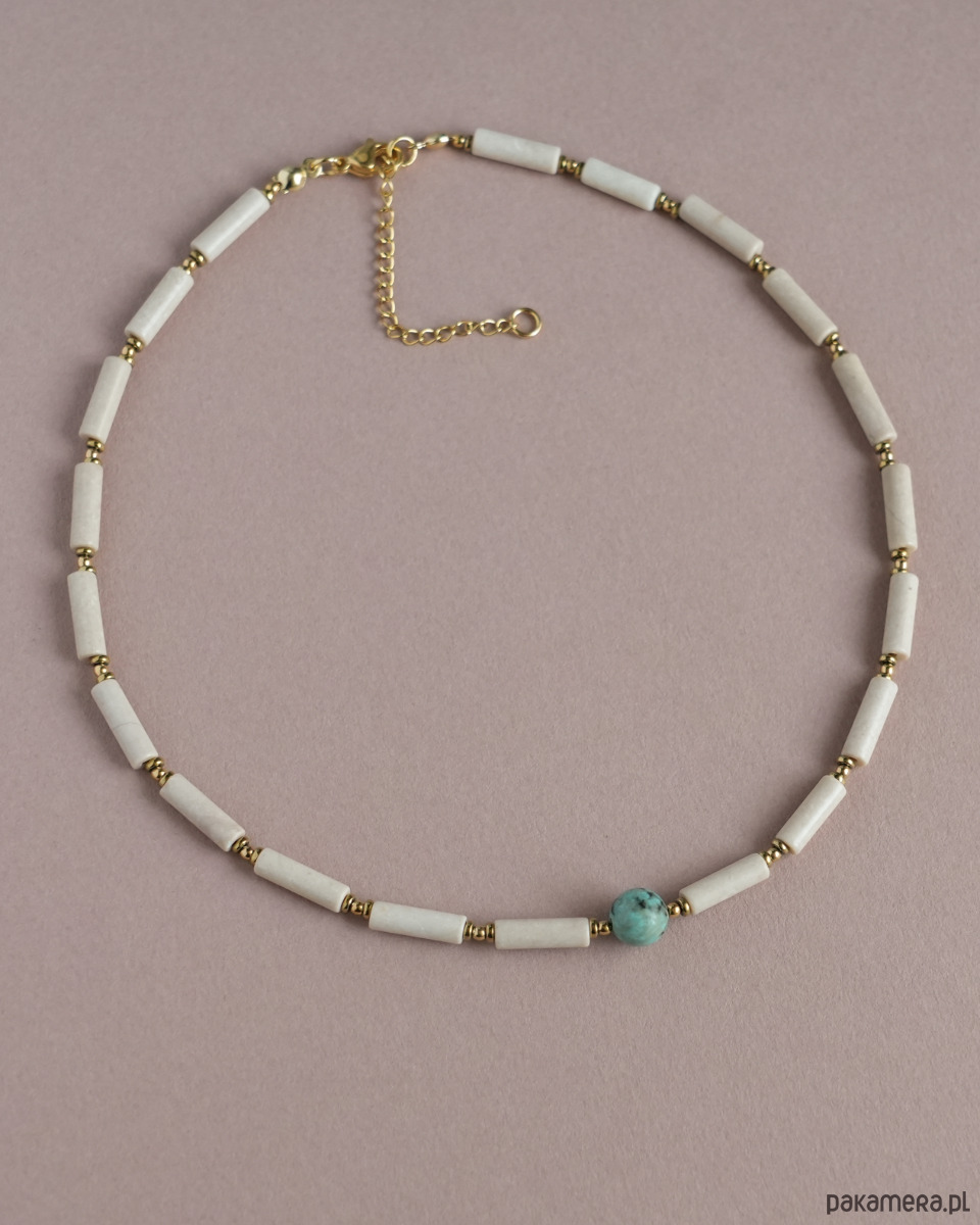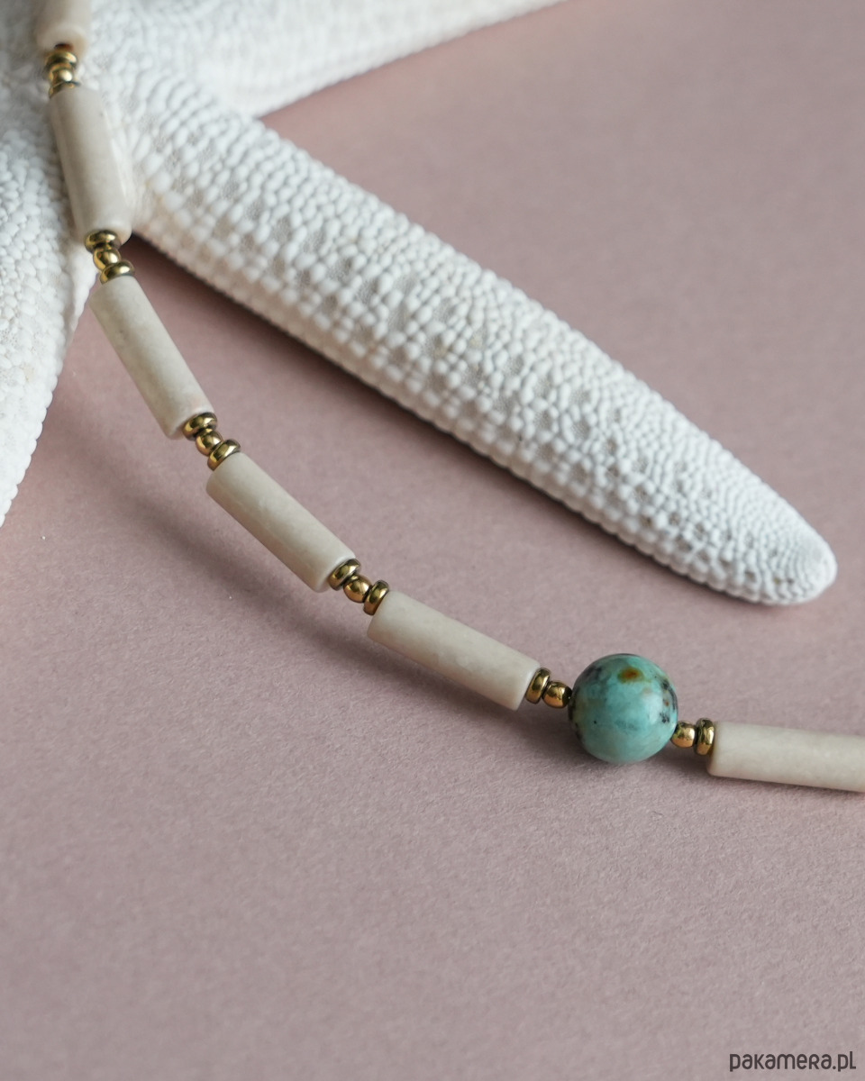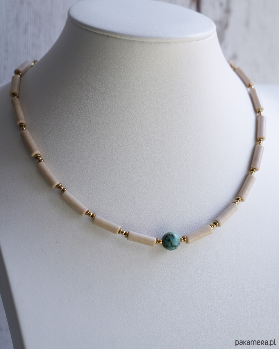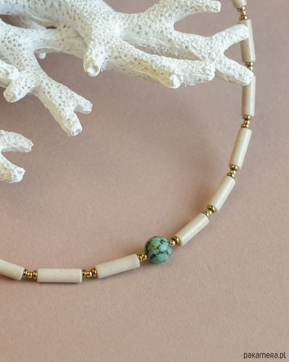 Beżowy naszyjnik choker z turkusem afrykańskim