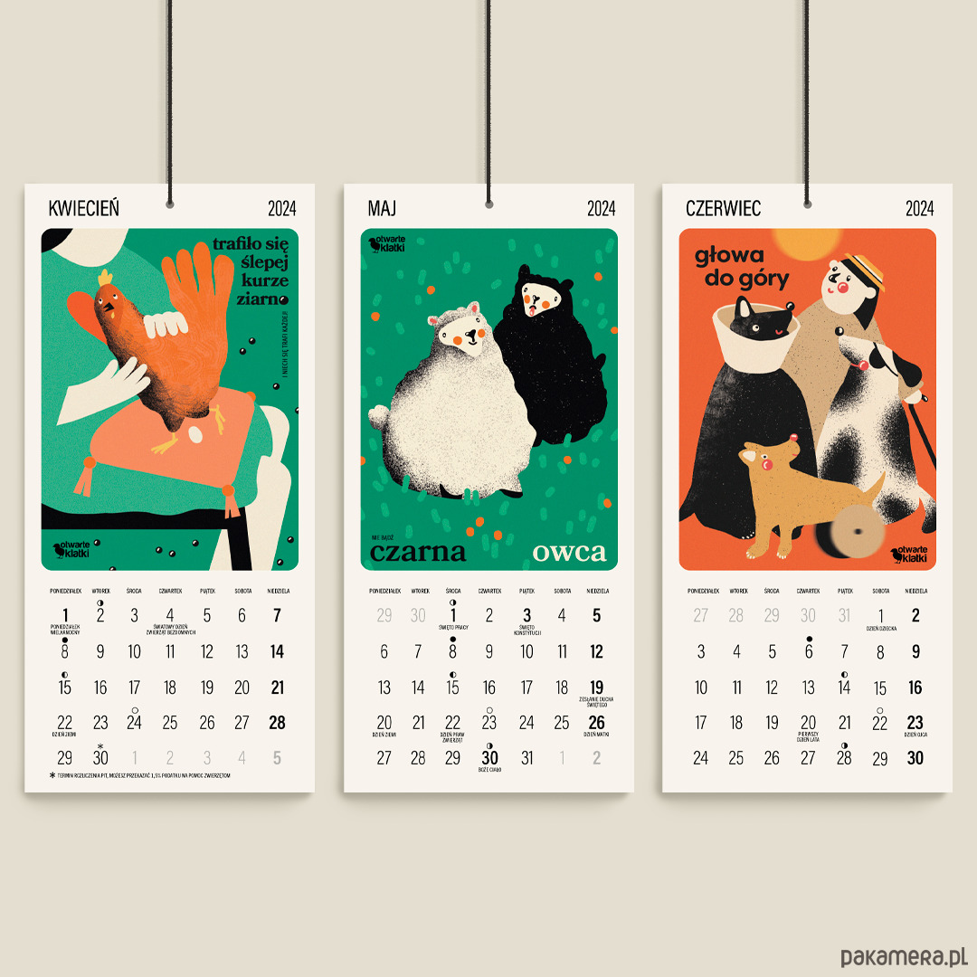 Kalendarz autorski na 2024 rok, stworzony z najczulszą myślą o zwierzętach - na wesoło, kolorowo i z przymrużeniem oka. Każdemu miesiącu patronuje inny gość - piesek i kotek, rybka, pszczółki, owieczka, wilk, kura, jeżyki, koniki… i każda ilustracja jest przeznaczona do wycięcia, oprawienia i powieszenia!