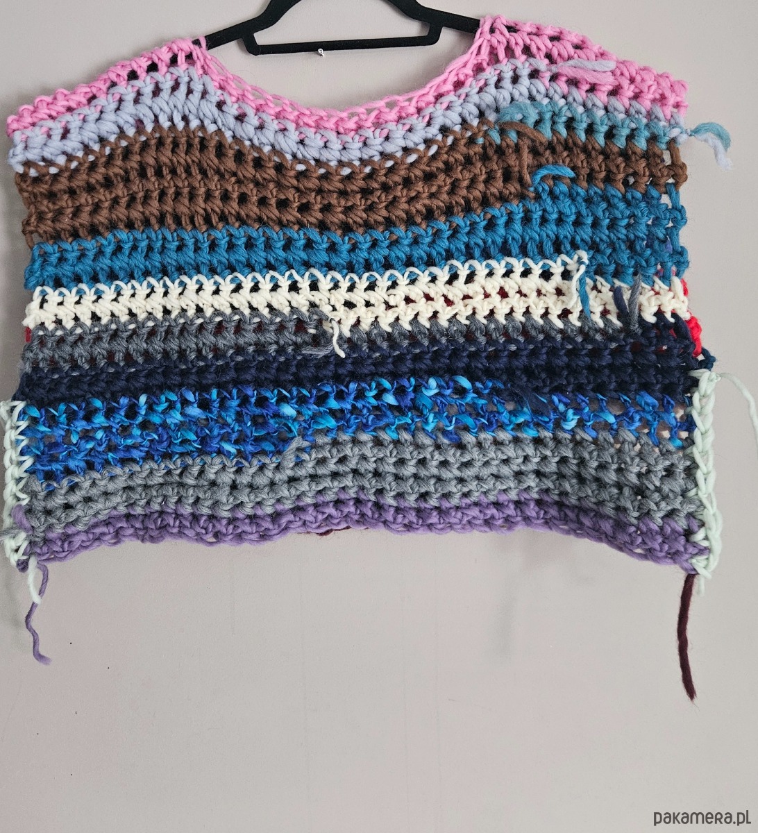 Unikatowy Bezrękawnik wykonana w całości ręcznie na szydełku z 100% naturalnej wełny. Każdy egzemplarz to niepowtarzalne połączenie kolorów – z obu stron bezrękawnik prezentuje się inaczej, co nadaje wyjątkowy, artystyczny charakter.