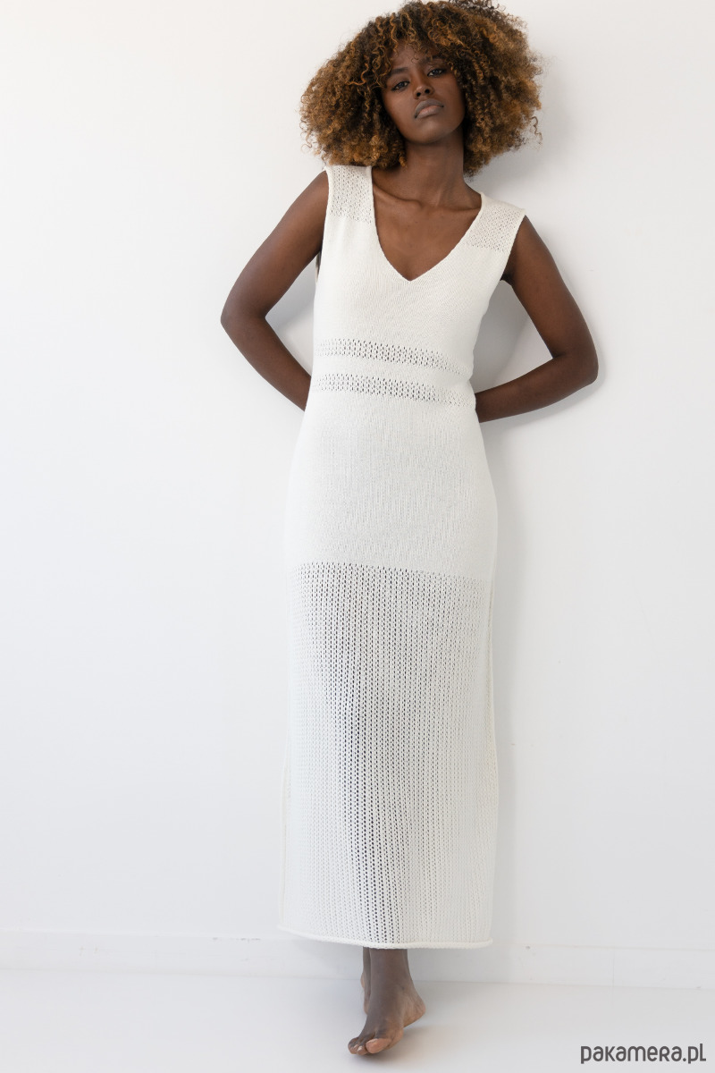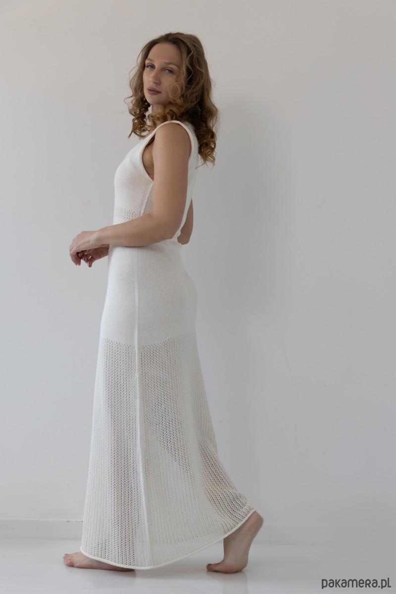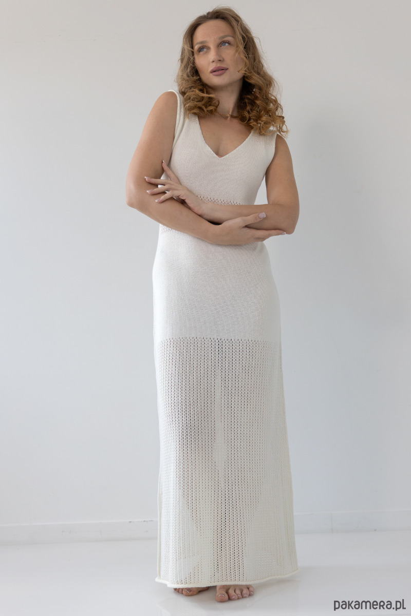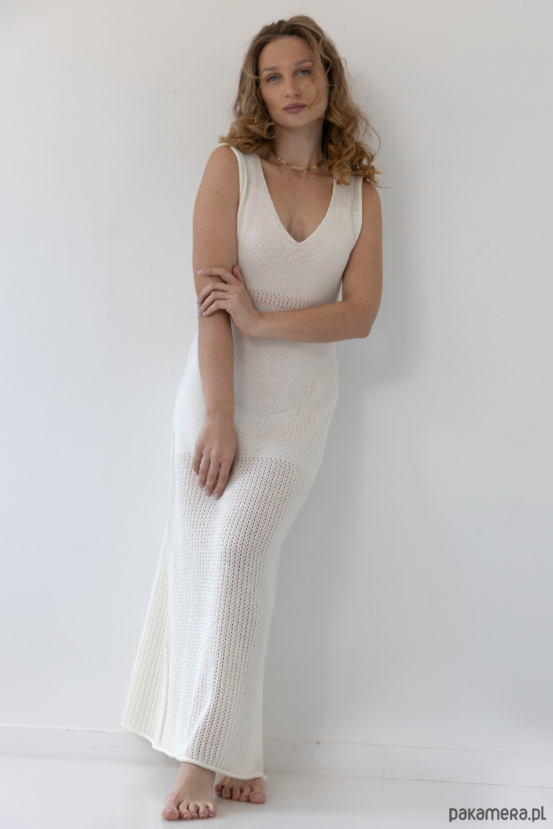 Bezszwowa długa sukienka z bawełny F2033 ecru