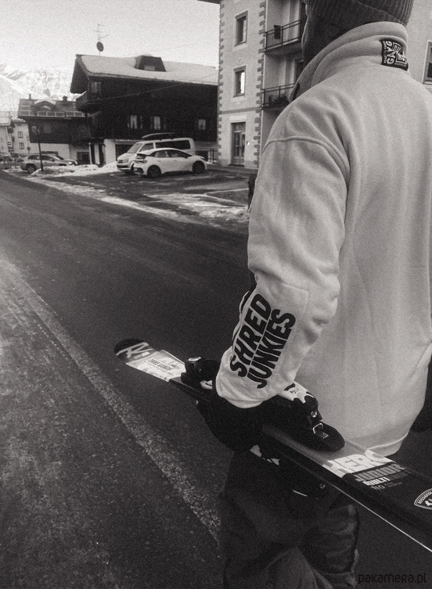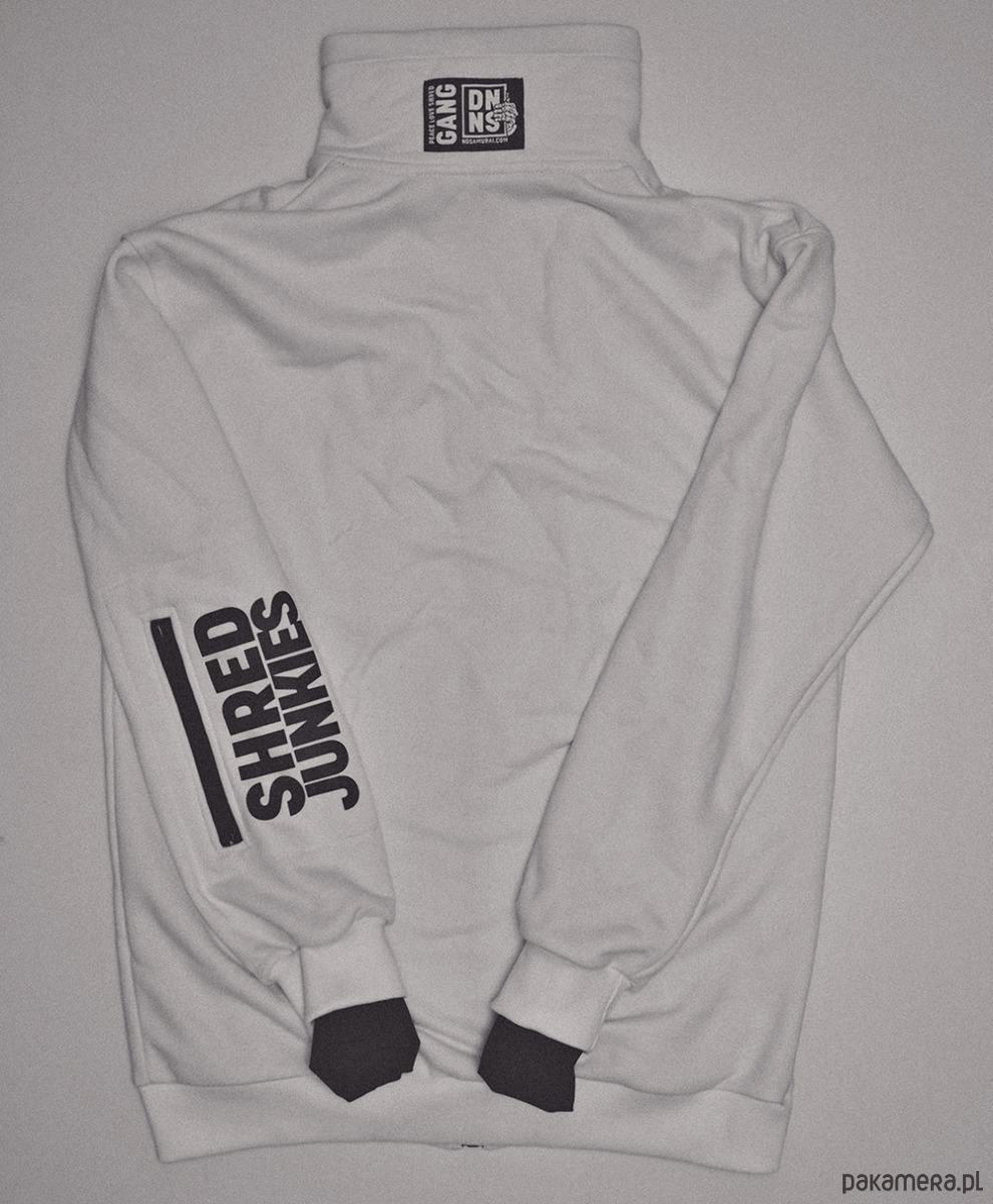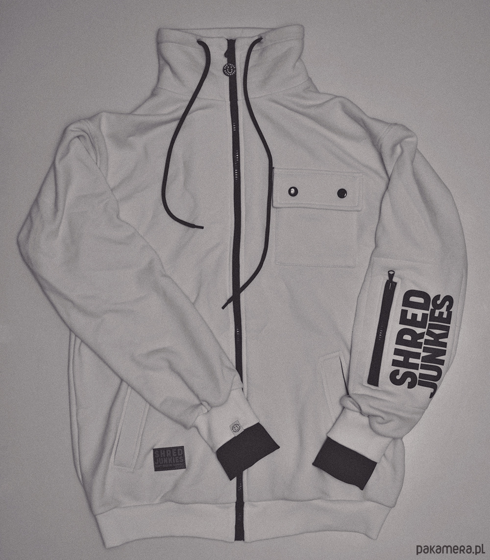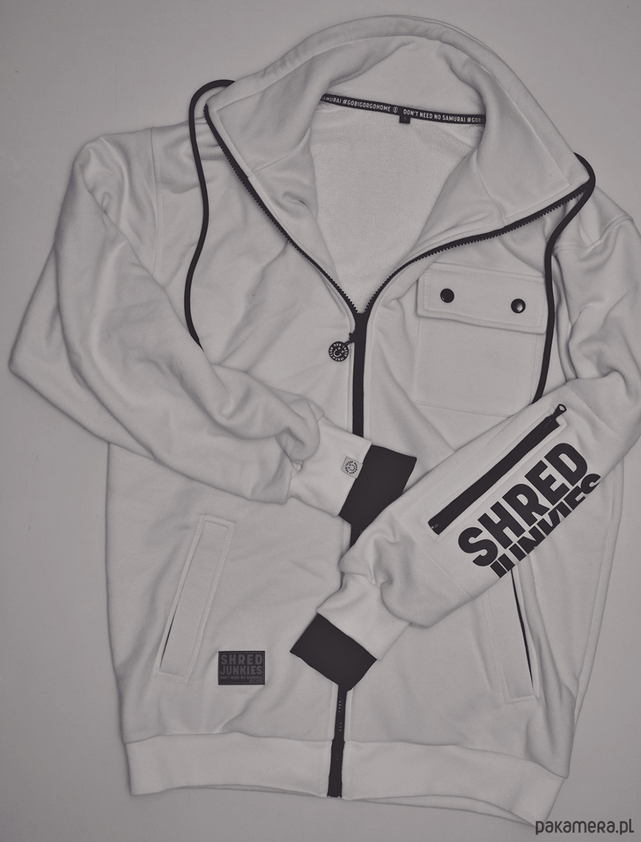 Na lewym rękawie kieszeń na karnet z napisem SHRED JUNKIES