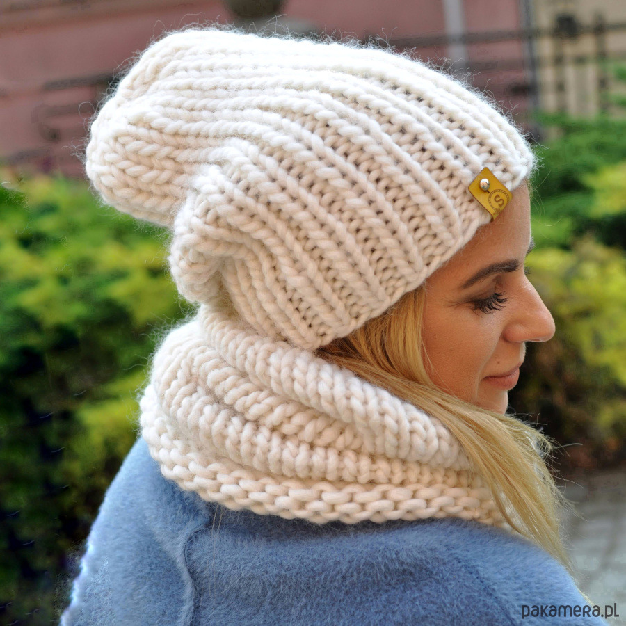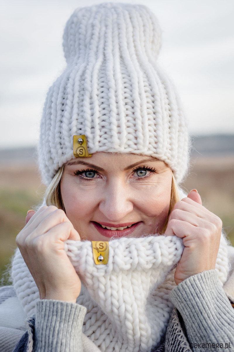 Biała czapka wykonana ręcznie z wełny z dodatkiem wełny alpaki