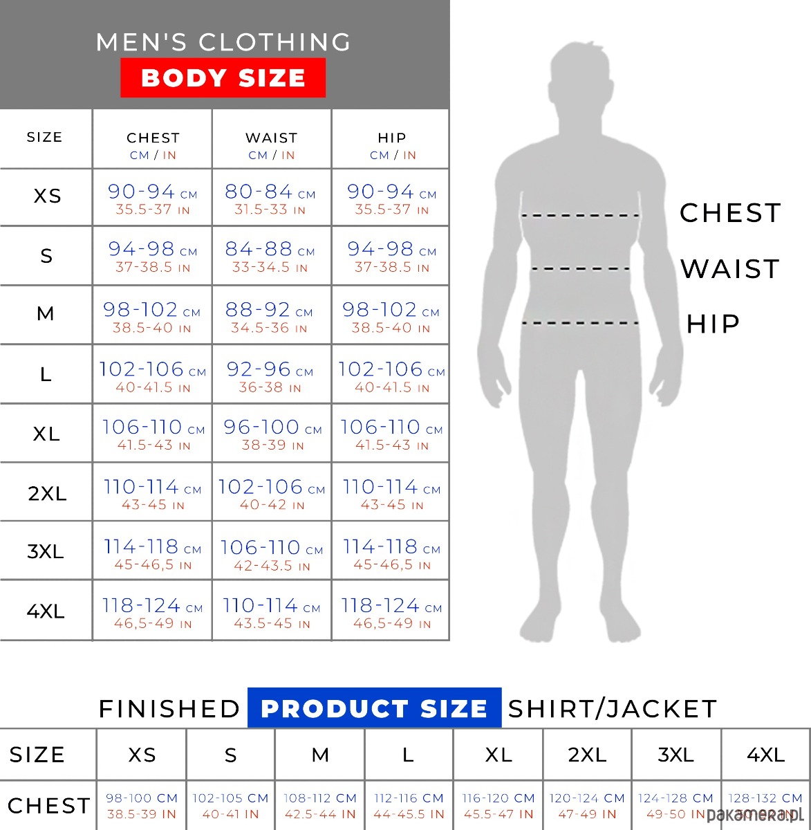 Przed zakupem zdecydowanie zalecamy zmierzenie swoich wymiarów, np. zmierzyć obwód klatki piersiowej i dodać około 14 cm na "swobodne dopasowanie". (Zawsze dodajemy około 14 cm)