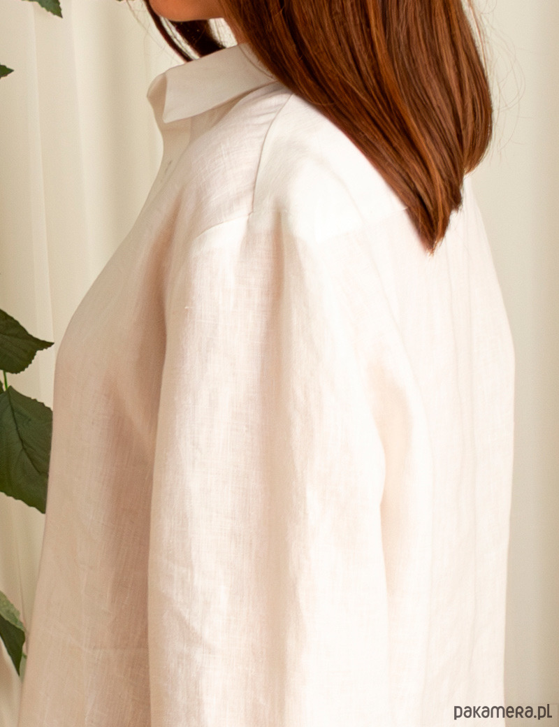 Luźna koszula damska o męskim kroju z białego lnu. Koszula dla kobiet ceniących wygodę i styl.