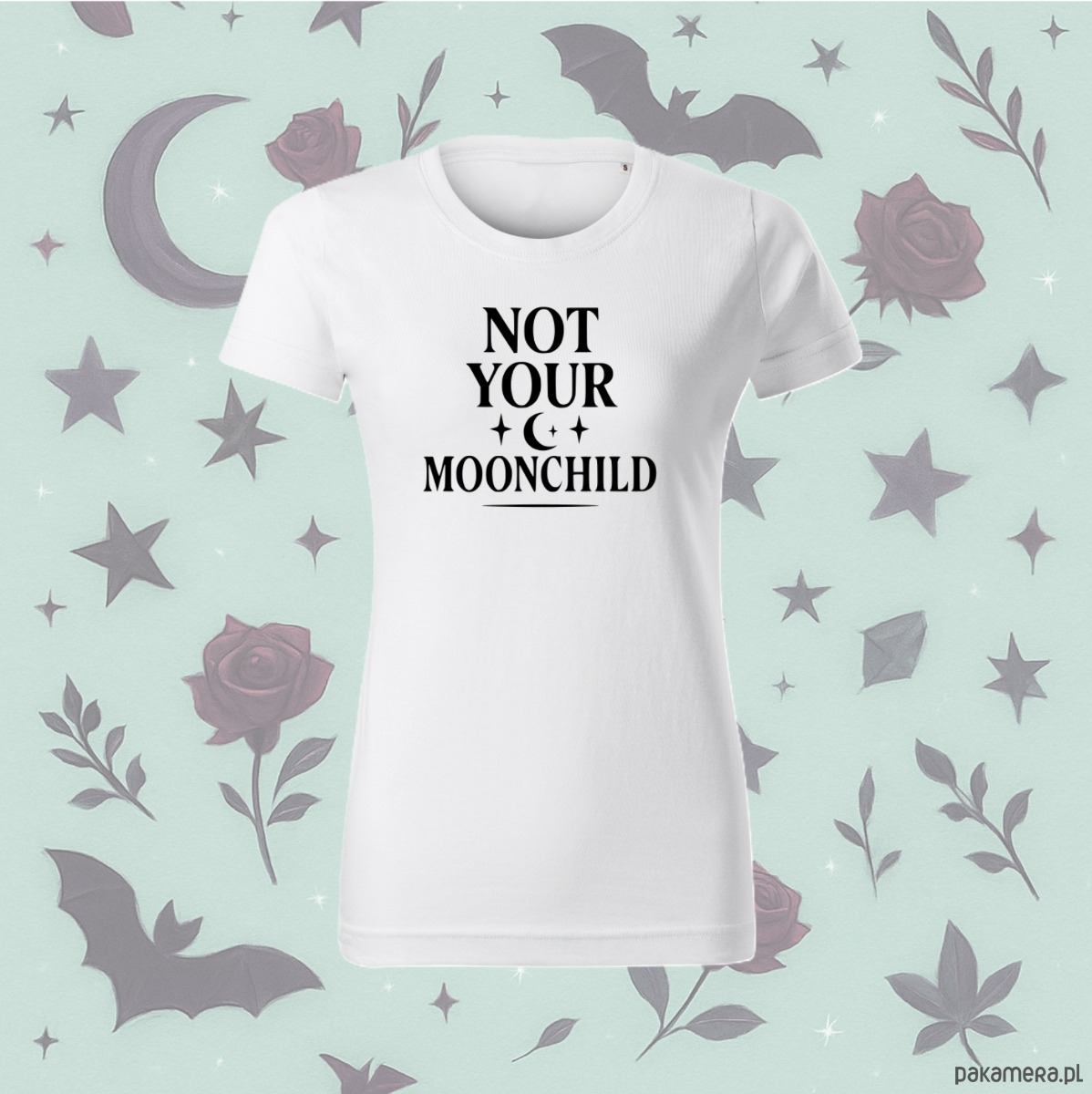Ta biała koszulka z grafiką „Not Your Moon Child” to manifest – delikatny, ale z charakterem.