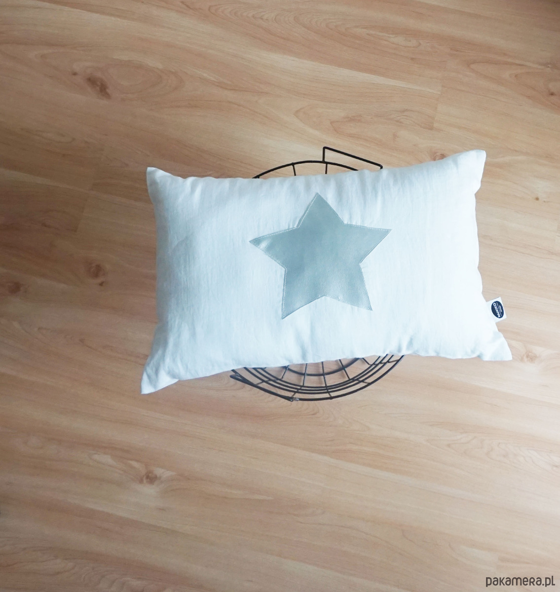 BIAŁA lniana poduszka ze srebrną gwiazdką